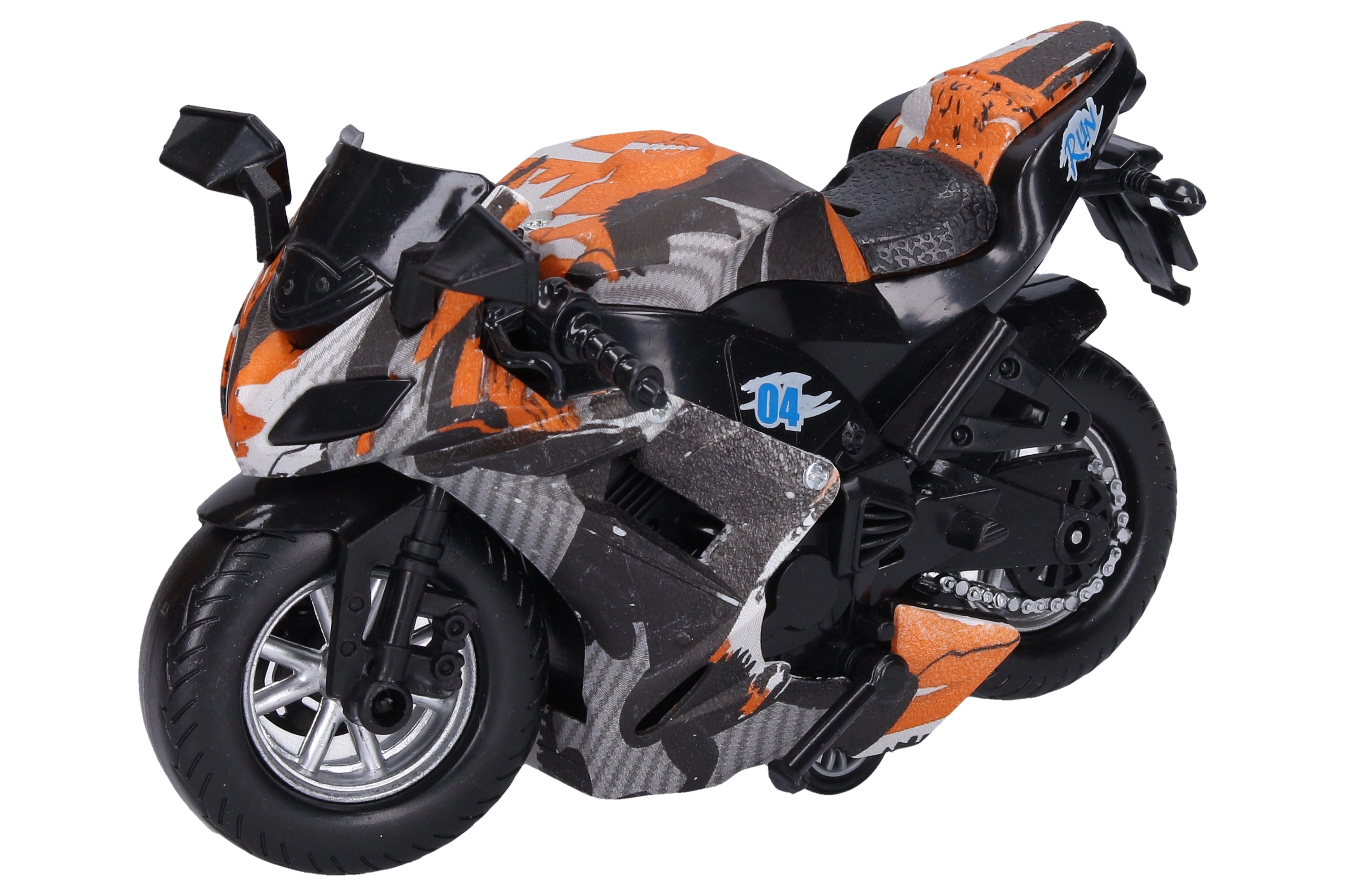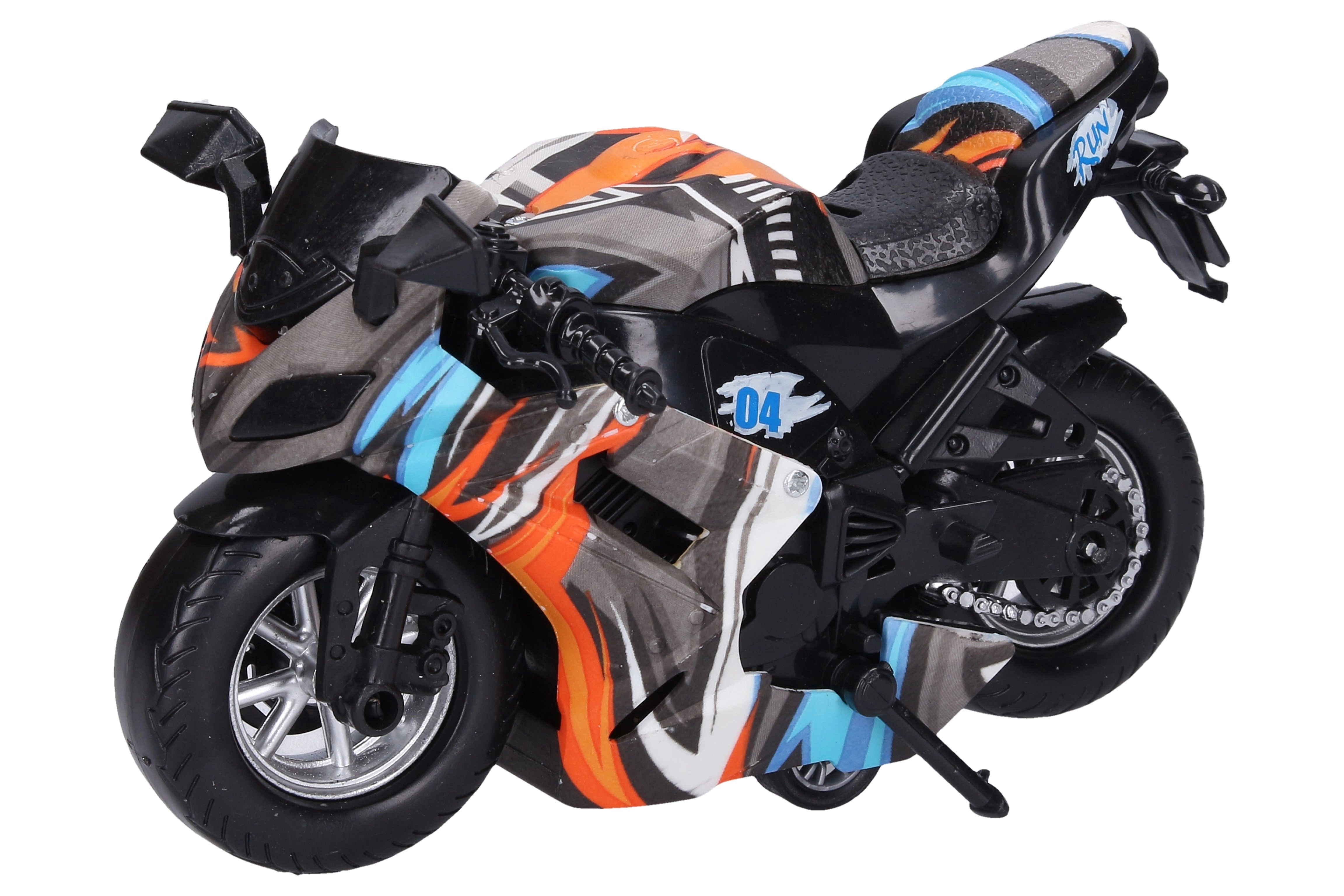 Αυτή η στιλάτη μηχανή με μηχανισμό οπισθοπορείας προσφέρει γρήγορη διασκέδαση χωρίς ανάγκη για μπαταρίες. Το απλό τράβηγμα προς τα πίσω και η ομαλή εκκίνηση προς τα μπροστά την καθιστούν τέλειο παιχνίδι για παιδιά που αγαπούν τους αγώνες και το δυναμικό παιχνίδι. Το συμπαγές μέγεθος των 16 cm χωράει σε σακίδιο ή στην τσέπη του καροτσιού.