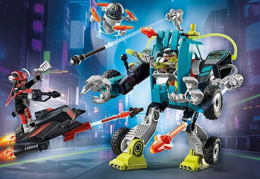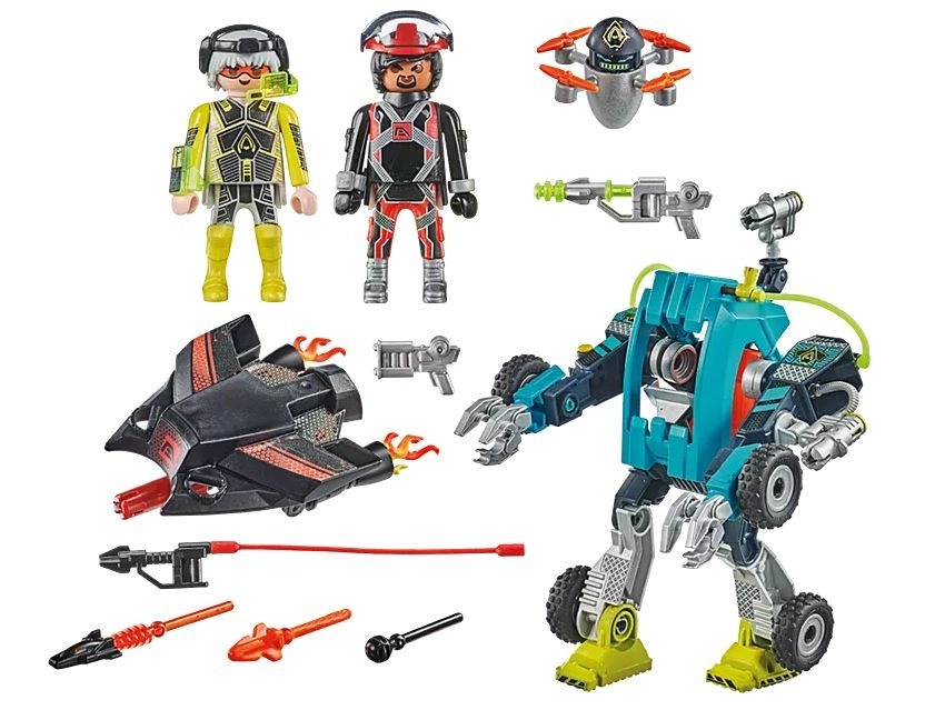 Ανακαλύψτε τον κόσμο δράσης PLAYMOBIL: το σετ Ρομπότ vs Ανεμόπτερο προσφέρει τα πάντα για συναρπαστικές συμπλοκές και τολμηρές αποστολές. Το ιπτάμενο ανεμόπτερο με βολές, το κινούμενο ρομπότ με εκτοξευτή και drone καθώς και το δίδυμο φιγούρων υποστηρίζουν τη δημιουργική παιχνίδι και την ανάπτυξη της φαντασίας.