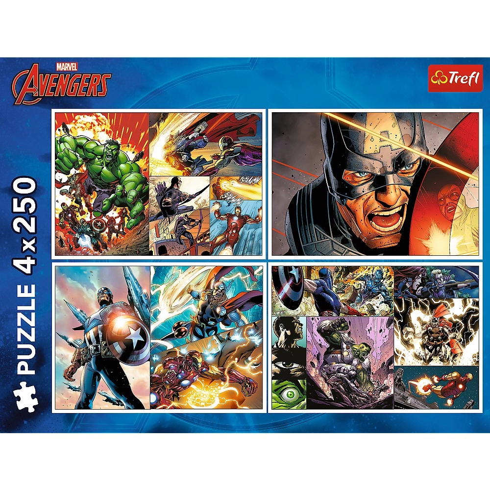 Απολαύστε ώρες διασκέδασης με σετ παζλ 4×250 κομμάτια με ήρωες των MARVEL Avengers. Τέσσερις ξεχωριστές εικόνες διαστάσεων 340 × 240 mm καλλιεργούν την υπομονή, τη συγκέντρωση και τη φαντασία των παιδιών, προσφέροντας ταυτόχρονα υπέροχη διασκέδαση για όλη την οικογένεια.