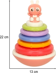 Η κούνια παιχνίδι Bibi-Inn έχει σχεδιαστεί για να διεγείρει την όραση, την ακοή και τη κινητικότητα του παιδιού σας. Ο χαριτωμένος λαγός στην κορυφή της βάσης και η πολύχρωμη παλέτα δακτυλίων εξασφαλίζουν ότι το παιδί θα έχει ώρες διασκέδασης δημιουργώντας έναν ουράνιο πύργο.