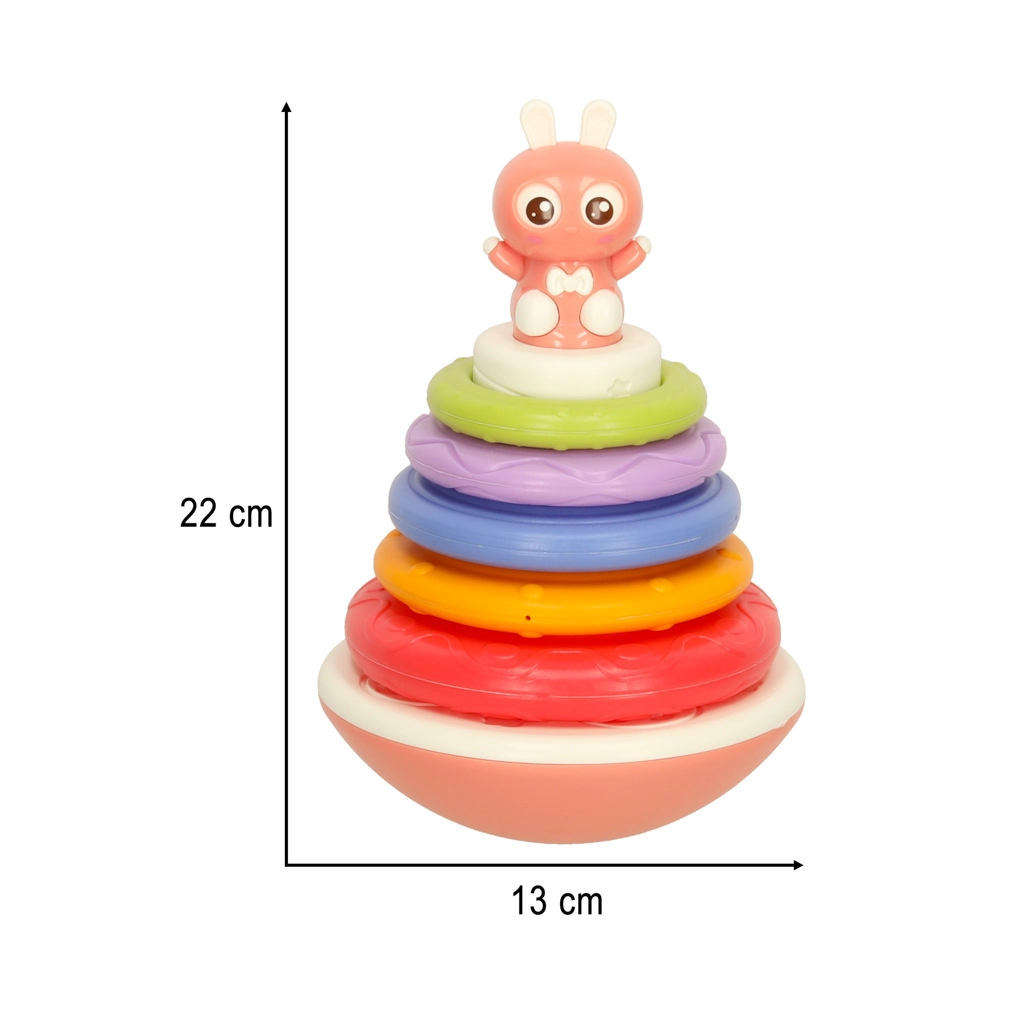 Αυτό το παιχνίδι είναι κατασκευασμένο από υλικά υψηλής ποιότητας που εξασφαλίζουν την ασφάλεια του παιδιού σας. Μέσω της στοίβαξης των δακτυλίων, το παιδί μαθαίνει συντονισμό και λεπτή κινητικότητα, ενώ οι χαρούμενες μελωδίες το ενθαρρύνουν για ακόμα περισσότερο παιχνίδι.
