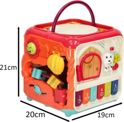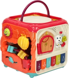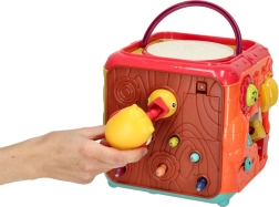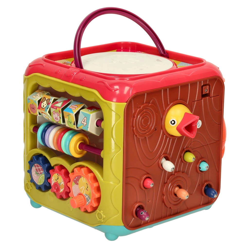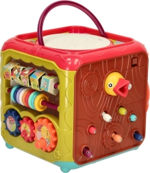 Περιλαμβάνεται και το αγαπημένο παιχνίδι «τάισε το πουλάκι» με μαγνητικά ζουζουνάκια και κουνιστή κουκουβάγια, καθώς και πολύχρωμα τουβλάκια για τον ταξινομητή σχημάτων. Χάρη στη πρακτική λαβή, ο κύβος μεταφέρεται εύκολα και είναι ιδανικός για παιχνίδι στο σπίτι και στο ταξίδι.