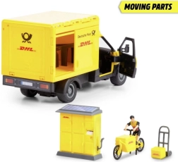 Αυτό το λεπτομερές σετ μεταφέρει τα παιδιά στον κόσμο της παράδοσης δεμάτων. Το ρεαλιστικό φορτηγό VOLVO στα χρώματα της DHL με ανοιγόμενα στοιχεία, φώτα και ήχους μετατρέπει κάθε παιχνίδι σε αυθεντική εμπειρία. Περιλαμβάνονται φιγούρα courier, ποδήλατο με κουτί, χειροκίνητο καρότσι, πακέτα και θυρίδα δεμάτων με ηλιακό πάνελ για ολοκληρωμένα σενάρια παράδοσης.