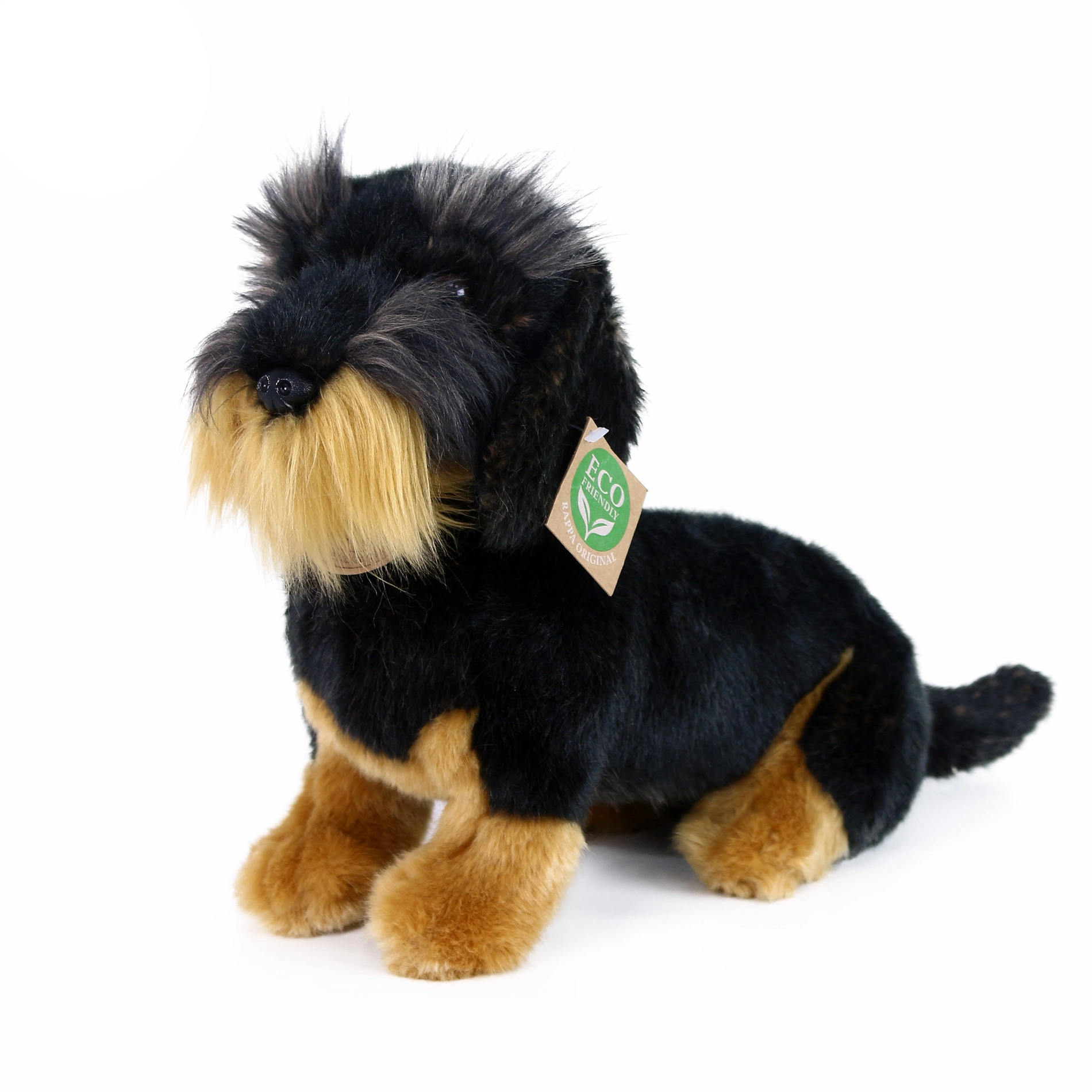 Αυτός ο καθιστός ντάσχουντ από την αποκλειστική συλλογή λούτρινων της Rappa θα σας ενθουσιάσει με την προσεγμένη χειροποίητη κατασκευή, την απαλότητα και τα ρεαλιστικά στοιχεία σε μαύρο-καφέ. Χάρη στη ασφαλή ανακυκλωμένη γέμιση είναι φιλικός προς το περιβάλλον και κατάλληλος ακόμη και για τα πιο μικρά παιδιά.