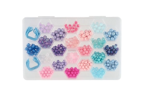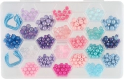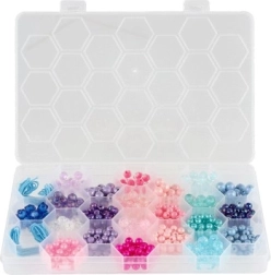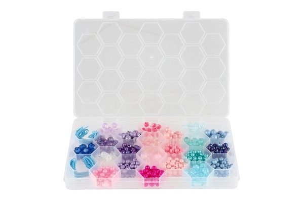 Το πλαστικό κουτί με εξαγωνικό σχεδιασμό στο καπάκι διευκολύνει την αποθήκευση και την οργάνωση των χαντρών ανά χρώμα.