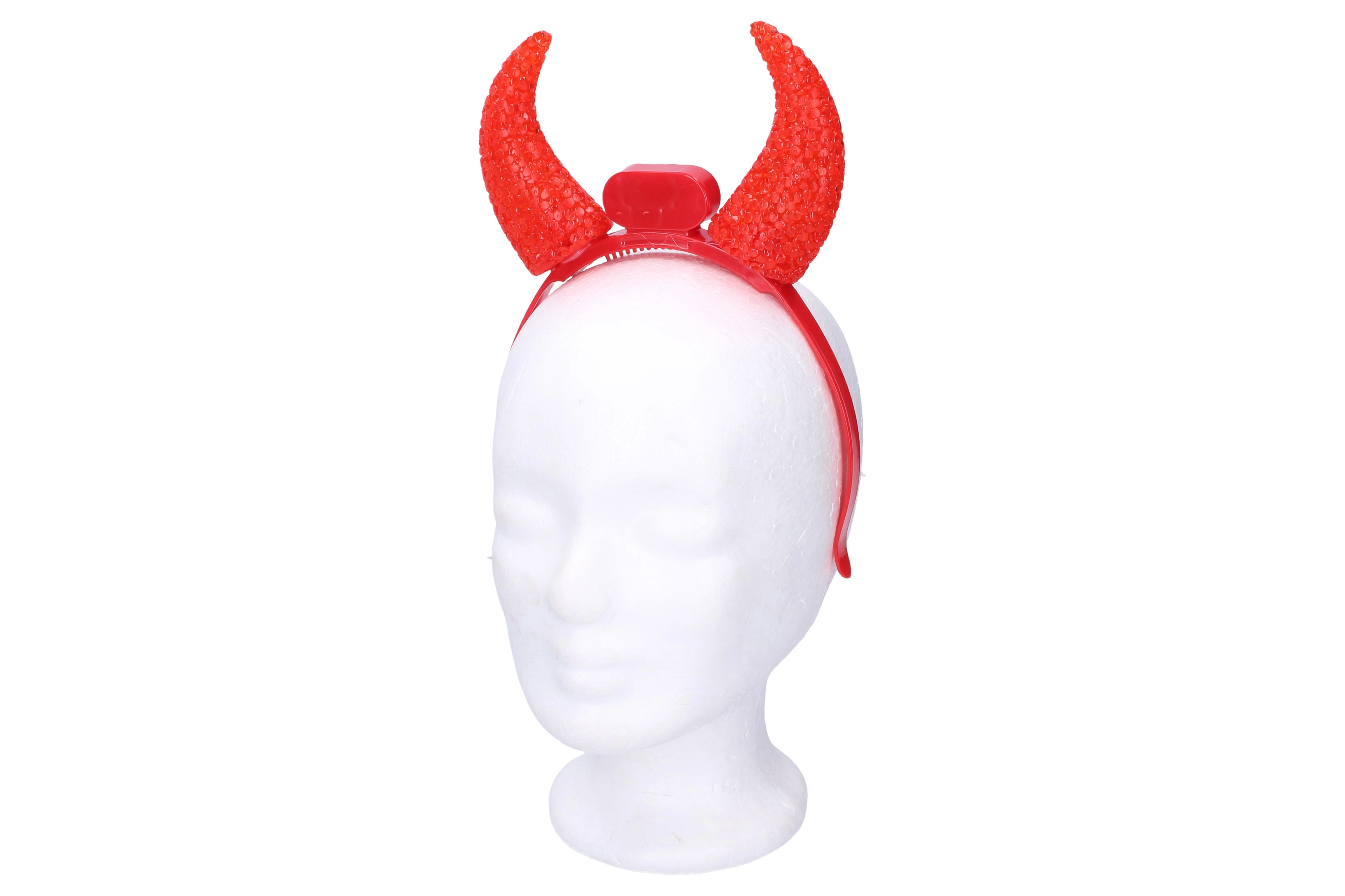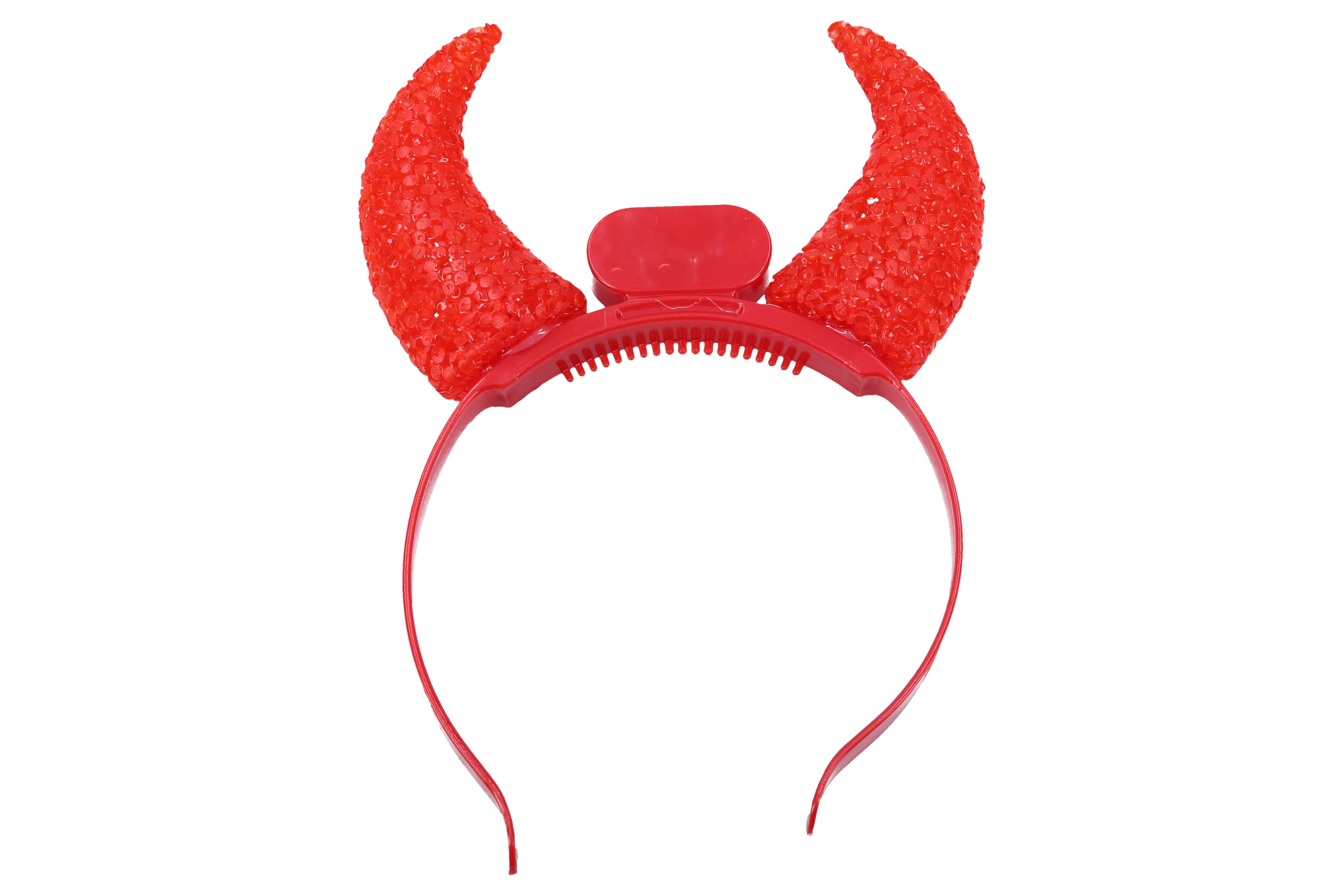Λαμπερά φωτεινά διαβολικά κέρατα σε άνετη στέκα που θα απογειώσουν κάθε κοστούμι – ιδανικά για αποκριάτικο καρναβάλι, χριστουγεννιάτικη γιορτή και γιορτή του Αγίου Νικολάου. Το εφέ που αναβοσβήνει προσφέρει διασκέδαση και η στέκα εφαρμόζει άψογα σε παιδιά από 3 ετών.