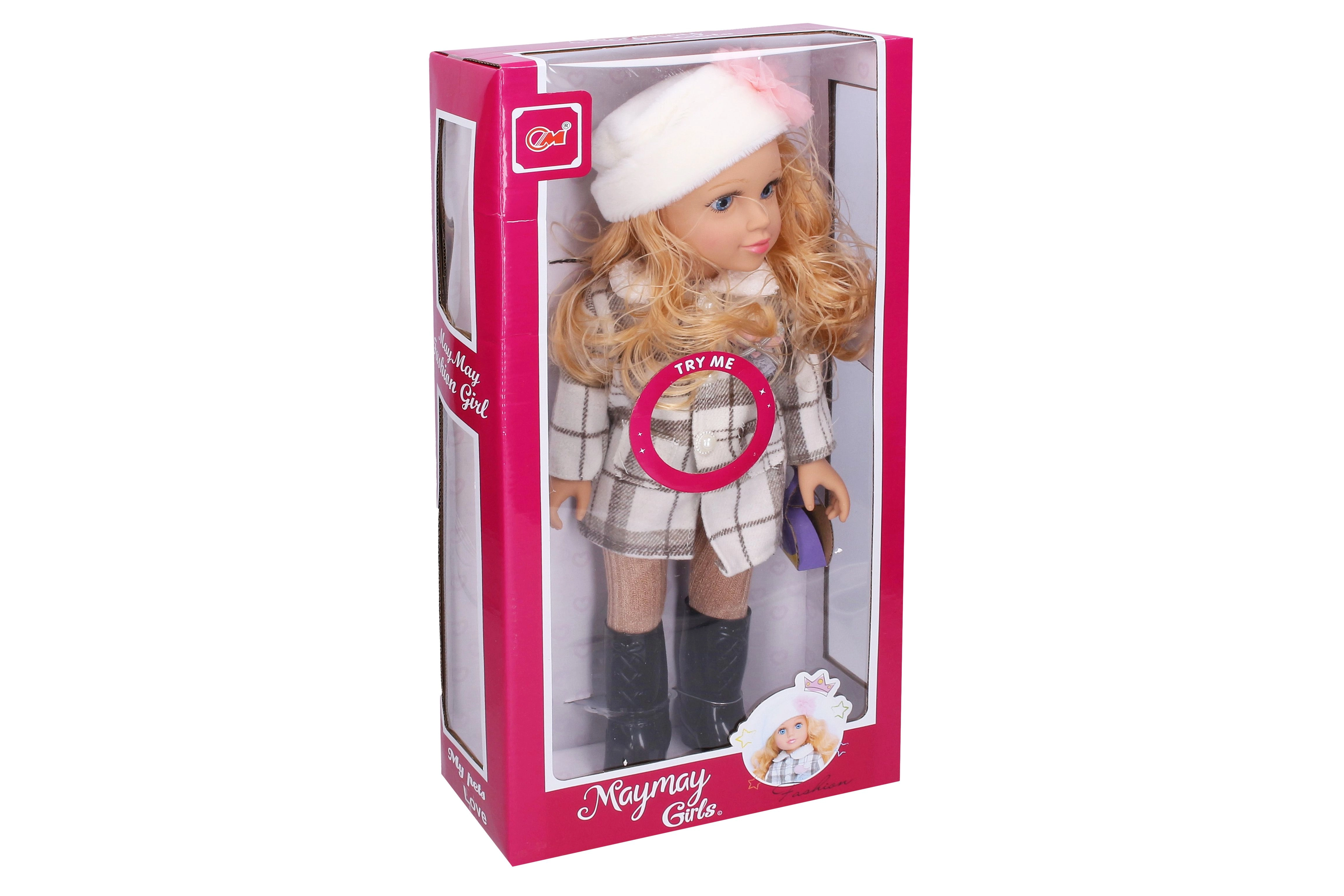 Χαριτωμένη κούκλα μεγέθους 48 cm που θα ενθουσιάσει κάθε παιδί με τα ηχητικά εφέ που ενεργοποιούνται με το πάτημα της κοιλίτσας. Περιλαμβάνει στιλάτο παλτό και σκουφάκι καθώς και μπαταρίες στη συσκευασία, ώστε να παίξετε αμέσως.