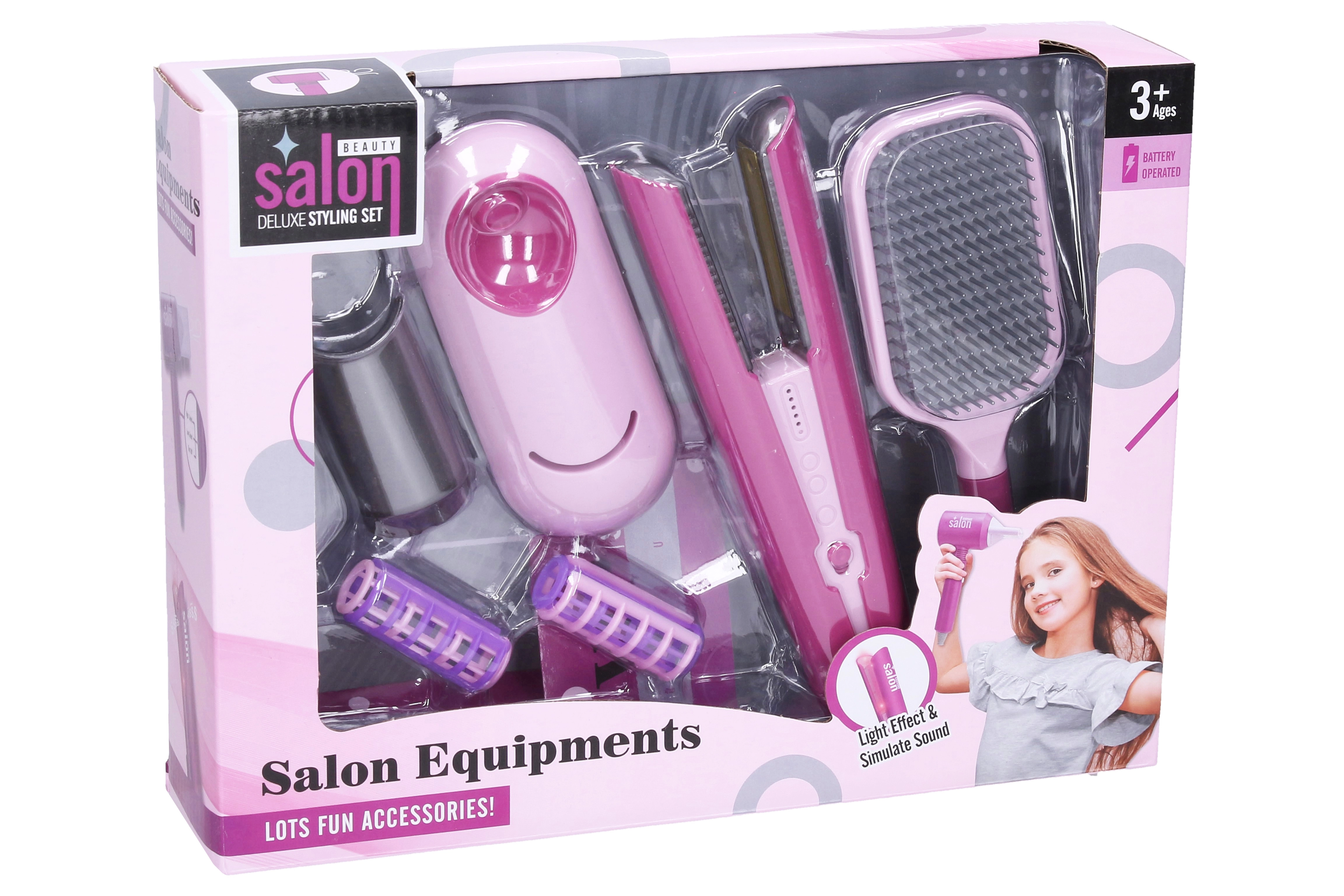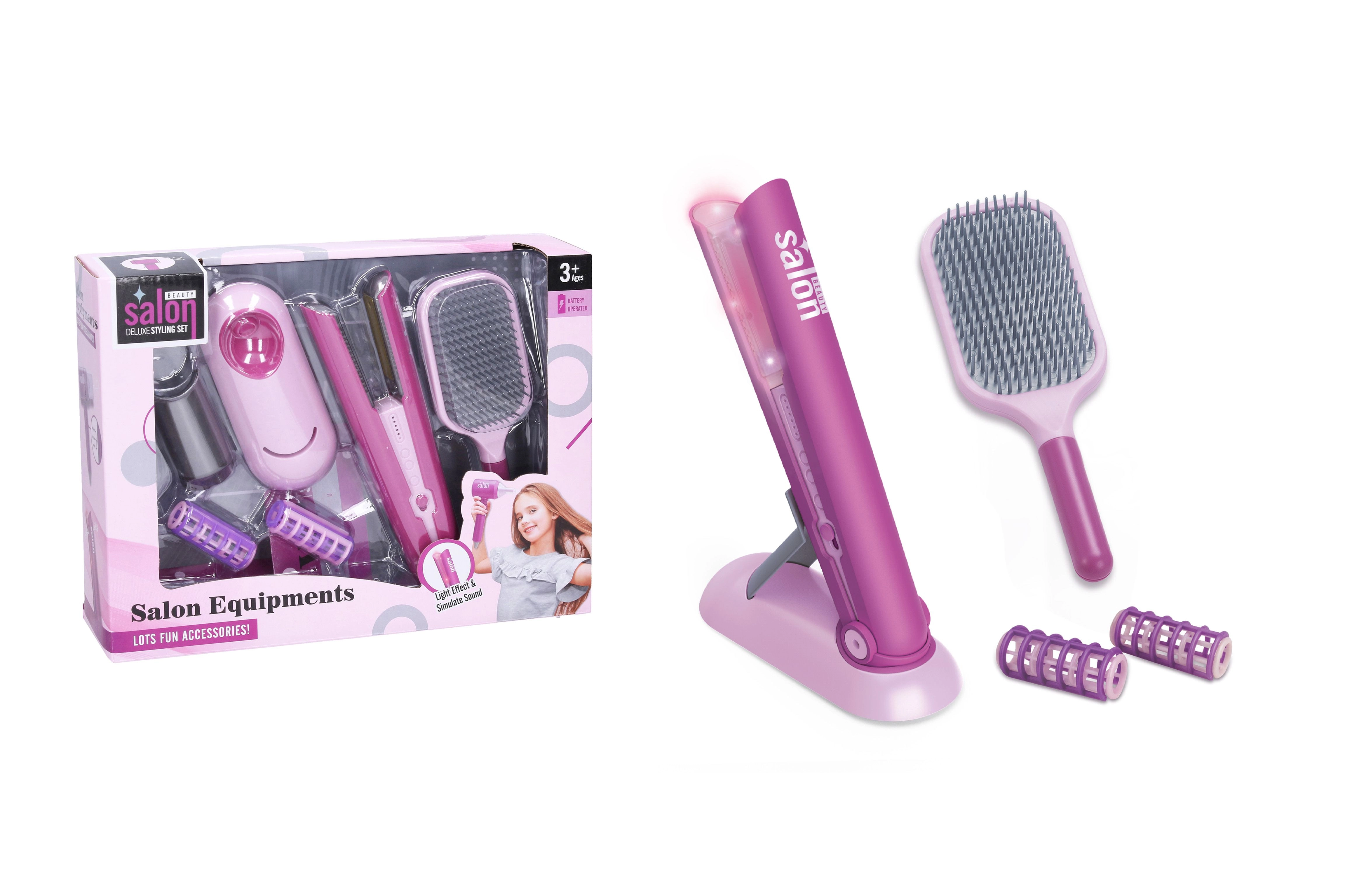 Στυλάτη παιδική πρέσα μαλλιών μήκους 19 cm που θα ενθουσιάσει τις μικρές κομμώτριες. Περιλαμβάνει πλούσια αξεσουάρ και διασκεδαστικά φωτεινά και ηχητικά εφέ, που χαρίζουν στη σκηνική δράση ρεαλισμό. Πρακτικό σετ με ψαλίδι για μπούκλες, βούρτσα, ρόλεϊ και βάση για το ψαλίδι που ενισχύει το δημιουργικό παιχνίδι και τη φαντασία.
