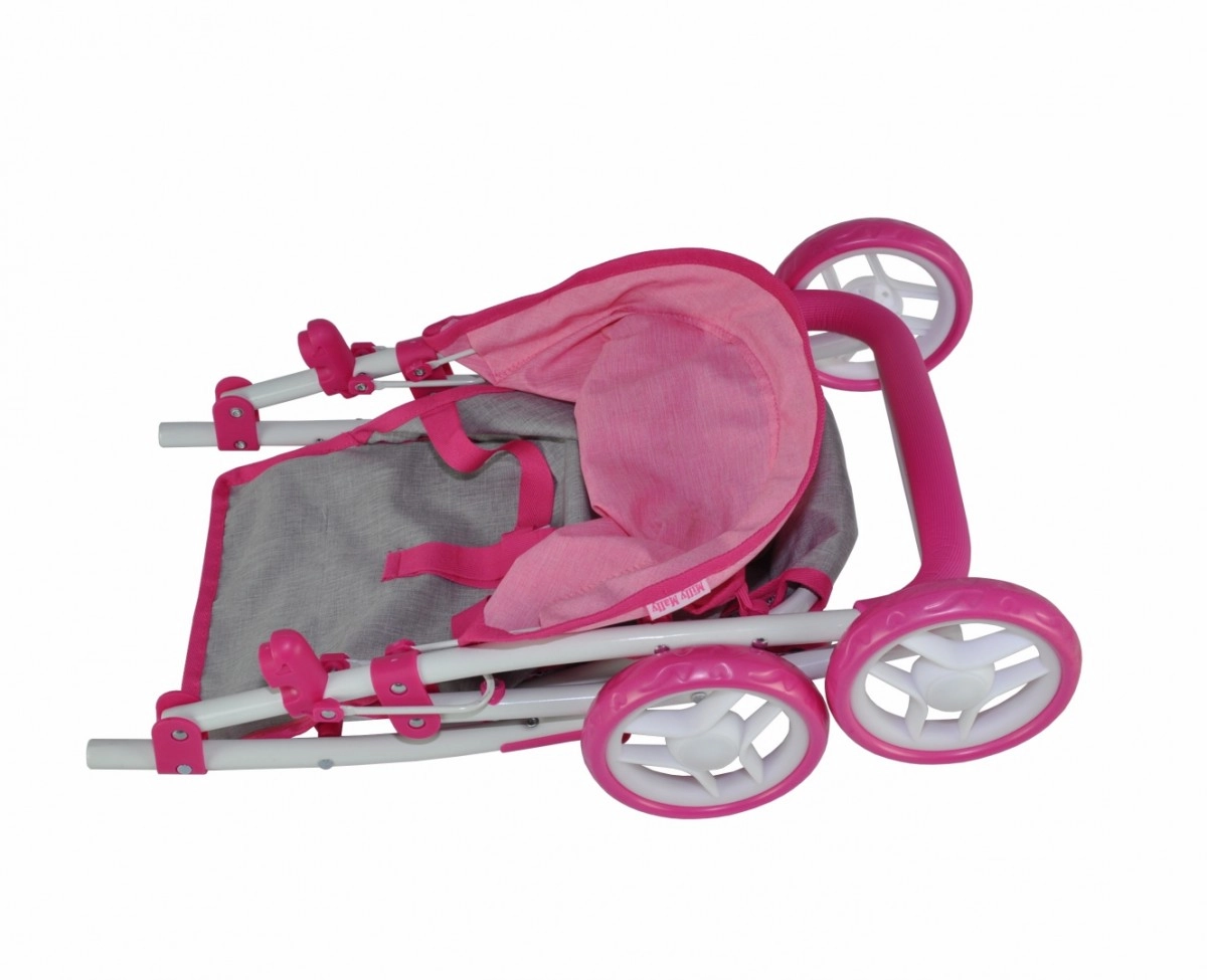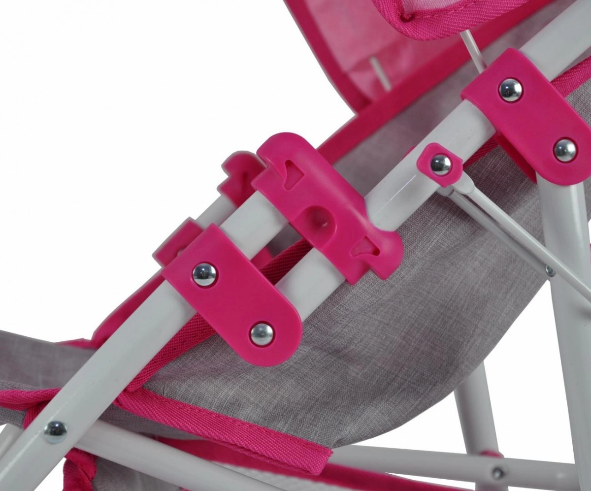 Στυλάτο και πρακτικό καροτσάκι για κούκλες που μοιάζει με αληθινό. Με στιβαρό μεταλλικό σκελετό, μαλακή χειρολαβή και ζώνες ασφαλείας, είναι ιδανικό για καθημερινό παιχνίδι στο σπίτι και έξω. Η πτυσσόμενη κουκούλα προστατεύει την κούκλα από τον ήλιο και τον άνεμο, ενώ το κάτω δίχτυ προσφέρει χώρο για παιχνίδια και μικρά ψώνια.
