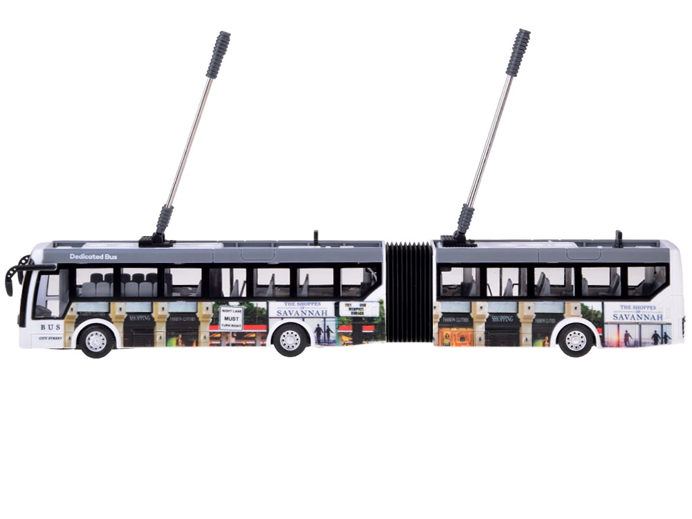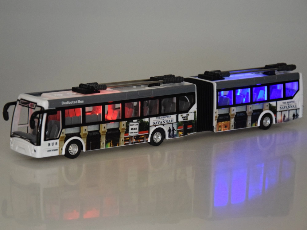 Ανακαλύψτε τη διασκέδαση με το αρθρωτό τρόλεϊ που μιμείται πιστά την αστική κίνηση – συμπεριλαμβανομένων συλλεκτών και λεπτομερούς εκτύπωσης στα πλαϊνά. Τα μπροστινά LED και τα αναβοσβήνοντα κόκκινα και μπλε εφέ φωτισμού προσθέτουν αυθεντικότητα στην οδήγηση, ενώ η αρθρωτή κατασκευή εξασφαλίζει ομαλές στροφές ακόμη και σε στενότερους χώρους.
