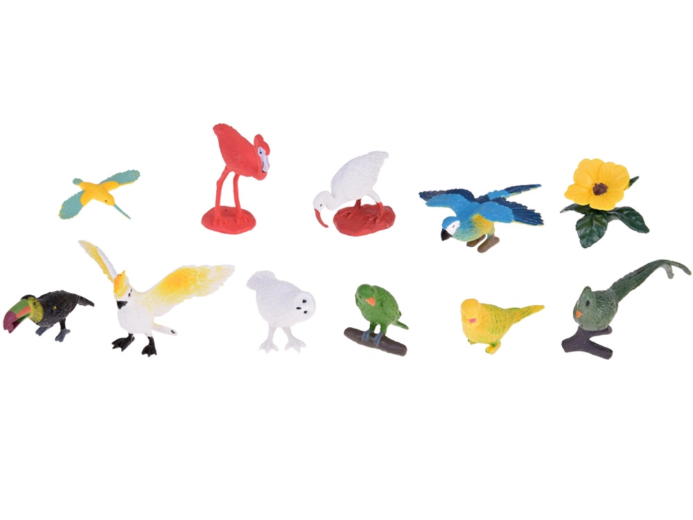 Ανακαλύψτε τη χαρά της γνωριμίας με τη φύση με ένα σετ 10 πολύχρωμων φιγούρων εξωτικών πουλιών και ένα επιπλέον λουλούδι. Οι φιγούρες έχουν λεπτομερή κατασκευή, ελκυστικά ζωντανά χρώματα και είναι ιδανικές για μάθηση και δημιουργικό παιχνίδι στο σπίτι και στο σχολείο.