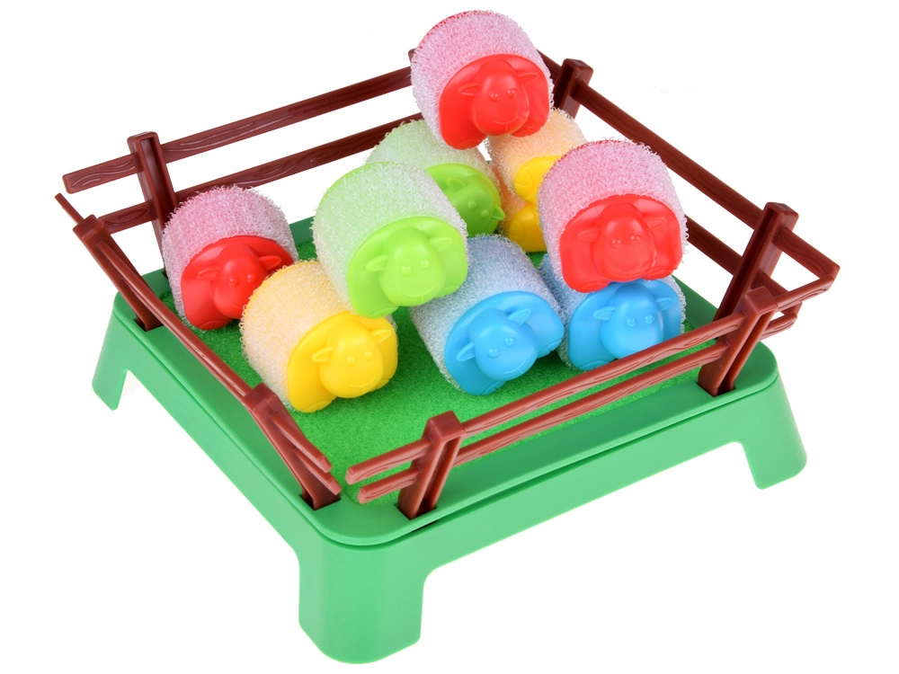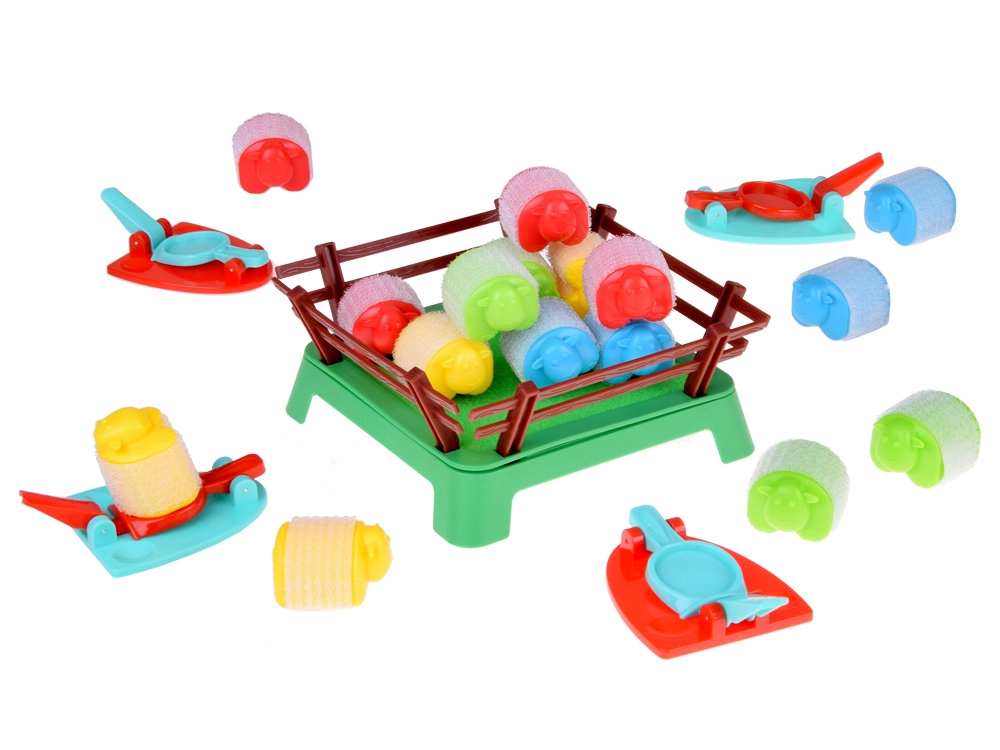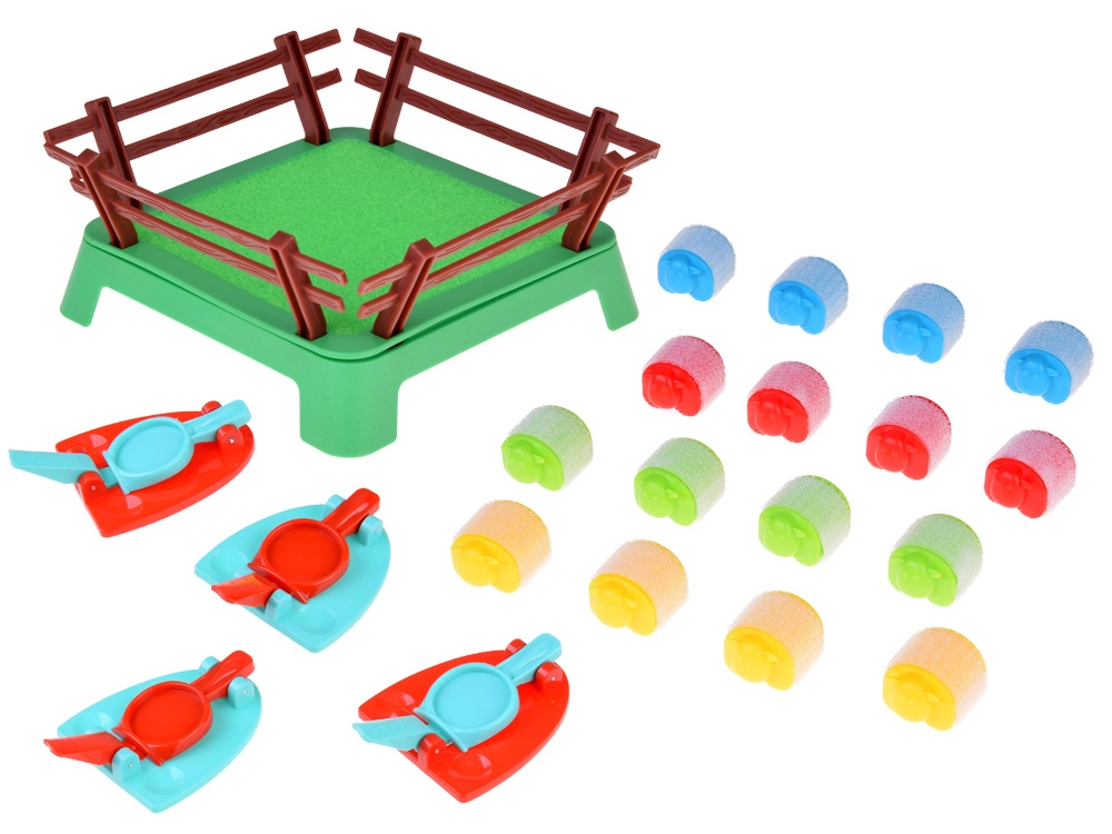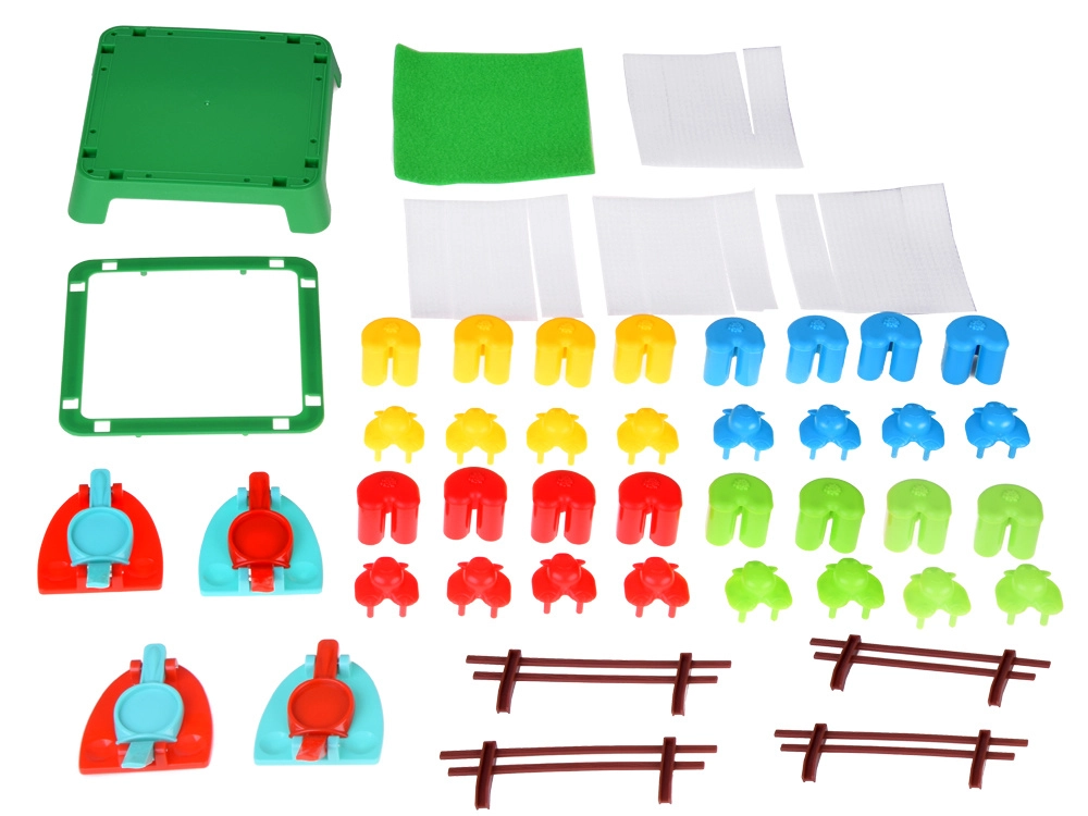 - 16 πολύχρωμα προβατάκια, 4 εκτοξευτές, πλαστικό μαντρί, οδηγίες (EN)