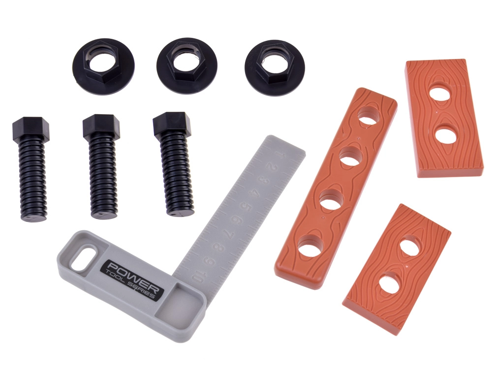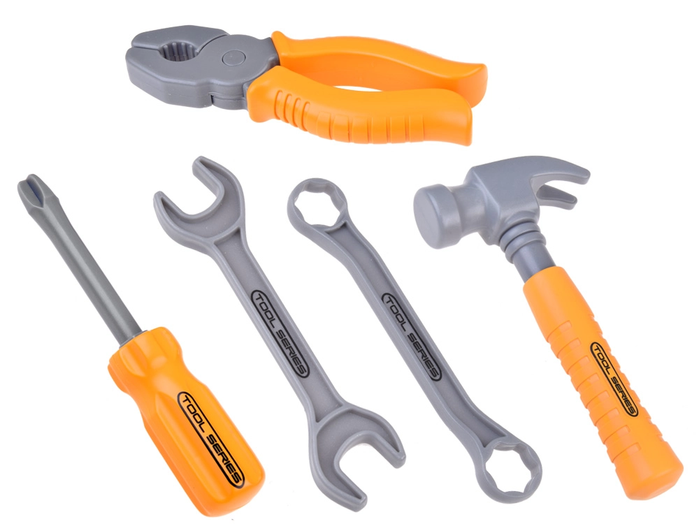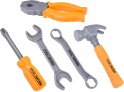 Το σετ περιλαμβάνει σφυρί, κλειδιά, κατσαβίδι, βίδες, παξιμάδια και δομικά κομμάτια – ιδανικό για εξάσκηση λεπτής κινητικότητας και δημιουργικό χτίσιμο.