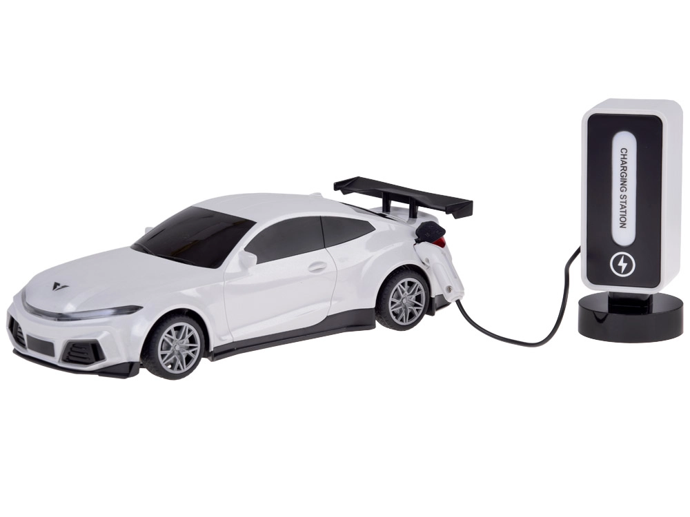 Στυλάτο ηλεκτρικό RC αυτοκίνητο με ειδικό σταθμό φόρτισης προσφέρει ώρες διασκέδασης για μικρούς δρομείς. Διαθέτει τηλεχειρισμό, 5 λειτουργίες φωτισμού, αυτόματο παρκάρισμα και ηχητικά εφέ. Ο πρακτικός σταθμός φόρτισης USB ανεφοδιάζει το αυτοκίνητο με ενέργεια όπως στα πραγματικά ηλεκτρικά οχήματα.