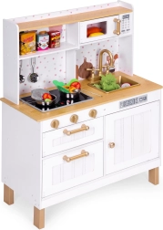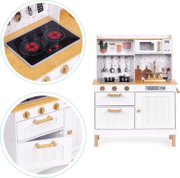 Η ξύλινη παιδική κουζίνα ECOTOYS είναι ιδανική επιλογή για μικρούς σεφ. Προσφέρει χαρά και διασκέδαση μιμούμενη τις πραγματικές δραστηριότητες της κουζίνας και αναπτύσσει τη λεπτή κινητικότητα και τη φαντασία. Η κουζίνα είναι κατασκευασμένη από ποιοτικά υλικά και περιλαμβάνει 7 μεταλλικά αξεσουάρ κουζίνας.