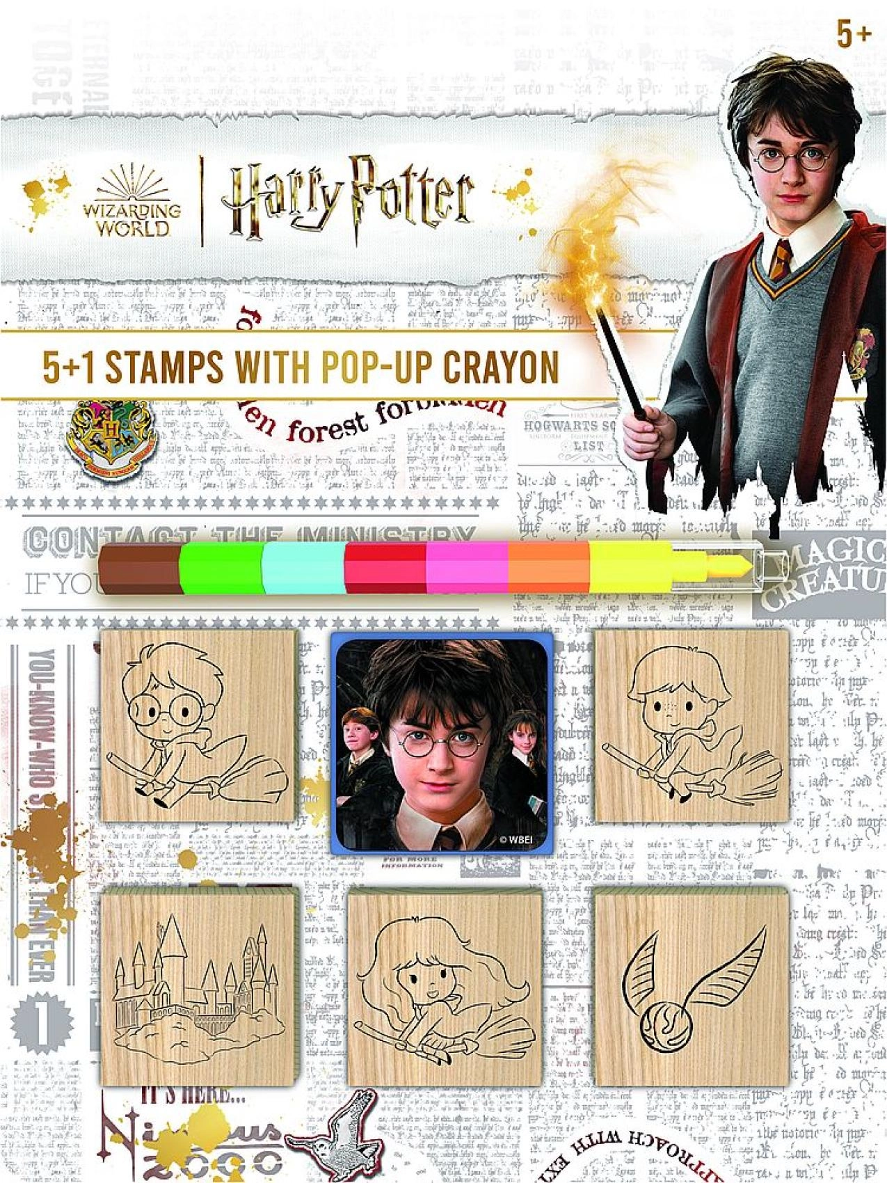 Ανακαλύψτε τον μαγικό κόσμο της δημιουργίας με το σετ σφραγίδων HARRY POTTER 5+1. Οι ξύλινες σφραγίδες είναι προσαρμοσμένες στα μικρά χεράκια, το πολύχρωμο ταμπόν εξασφαλίζει έντονες αποτυπώσεις και η επτάχρωμη αναδιπλούμενη κηρομπογιά δίνει ζωή στις εικόνες. Ιδανικό για παιδικά έργα, ευχετήριες κάρτες, ημερολόγια και σχολικές δημιουργίες.