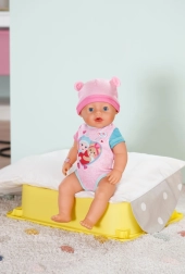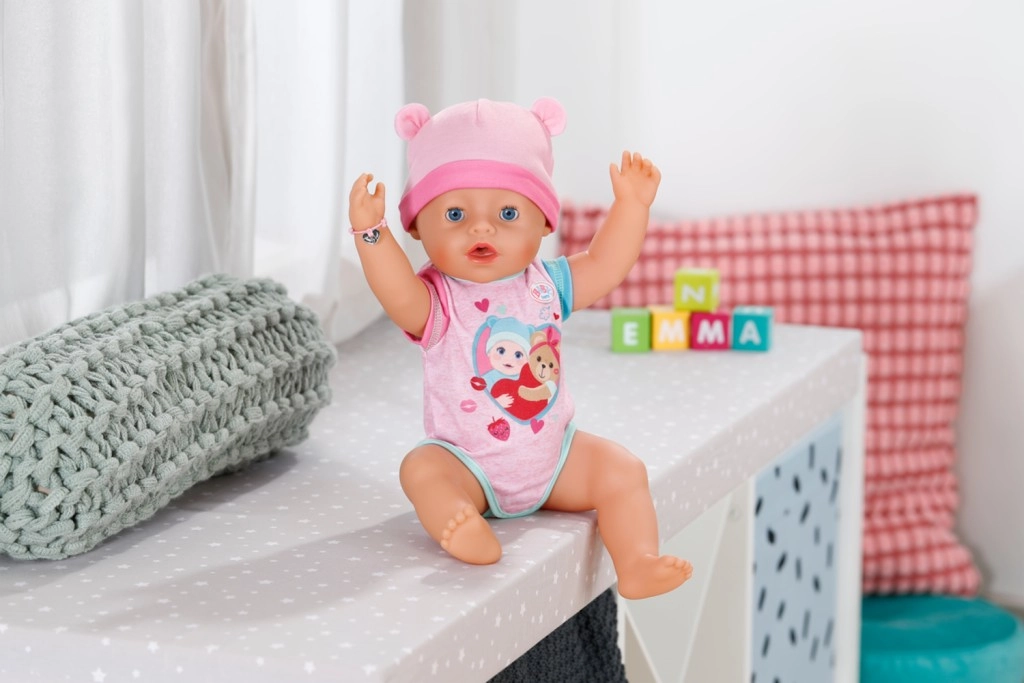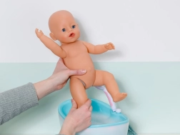 Βυθιστείτε στον κόσμο της Baby Born με την κούκλα Emma, που έρχεται με το γοητευτικό νέο της συνολάκι και προσφέρει δέκα ρεαλιστικές λειτουργίες. Το σετ περιλαμβάνει επίσης δέκα διασκεδαστικά αξεσουάρ, όπως μαγικό πιάτο, κουτάλι, πιπίλα, μπιμπερό, πάνα και γιογιό με λειτουργία νερού. Η Emma μπορεί να πίνει, να κλαίει αληθινά δακρυάκια, να κοιμάται, να κάνει μπάνιο και να γεμίζει την πανούλα της. Τα μάτια της ανοίγουν και κλείνουν με τη βοήθεια της περιστρεφόμενης πιπίλας. Δεν απαιτούνται μπαταρίες και είναι κατάλληλη για παιδιά από 3 ετών.