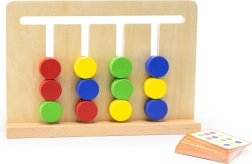 Αυτό το έξυπνο και ανθεκτικό βοήθημα αναπτύσσει λογική σκέψη, λεπτή κινητικότητα και συγκέντρωση. Τα παιδιά τοποθετούν τα τουβλάκια στις σωστές θέσεις και αναπαράγουν τις κάρτες με τις επιμέρους ασκήσεις – αρχικά βάσει χρωμάτων, αργότερα βάσει γεωμετρικών σχημάτων. Το παιχνίδι οδηγεί φυσικά σε προγραμματισμό της ακολουθίας κινήσεων και εξασκεί την υπομονή.