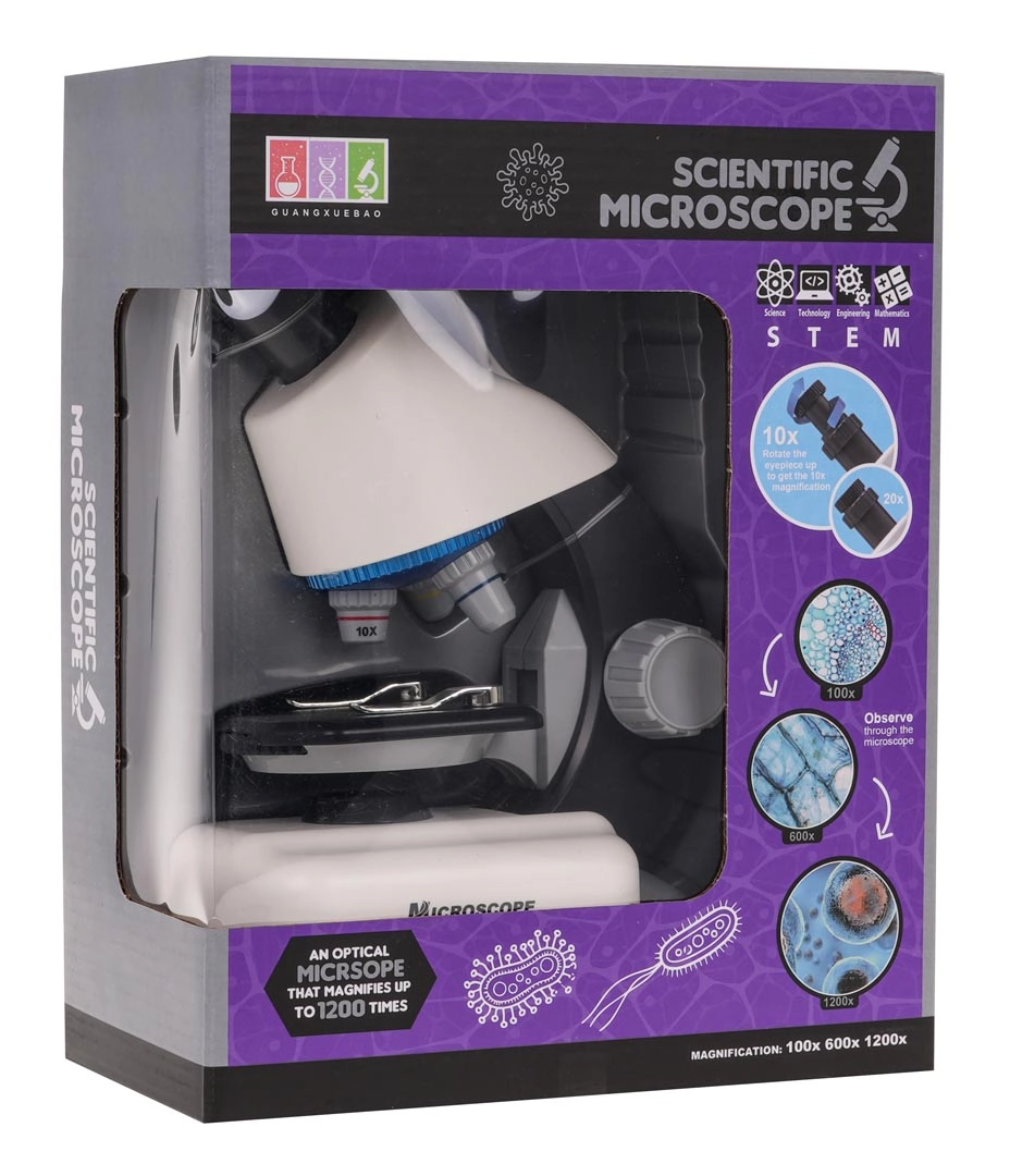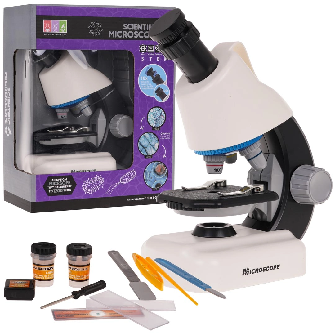 Ζήστε τον μαγικό κόσμο της μικροσκοπίας με το λευκό μας μικροσκόπιο, ιδανικό τόσο για εκπαιδευτικούς όσο και για ψυχαγωγικούς σκοπούς. Αυτό το μικροσκόπιο όχι μόνο προσφέρει εντυπωσιακή μεγέθυνση έως 1200x, αλλά περιλαμβάνει επίσης διάφορα αξεσουάρ που διευκολύνουν την εξέταση δειγμάτων.