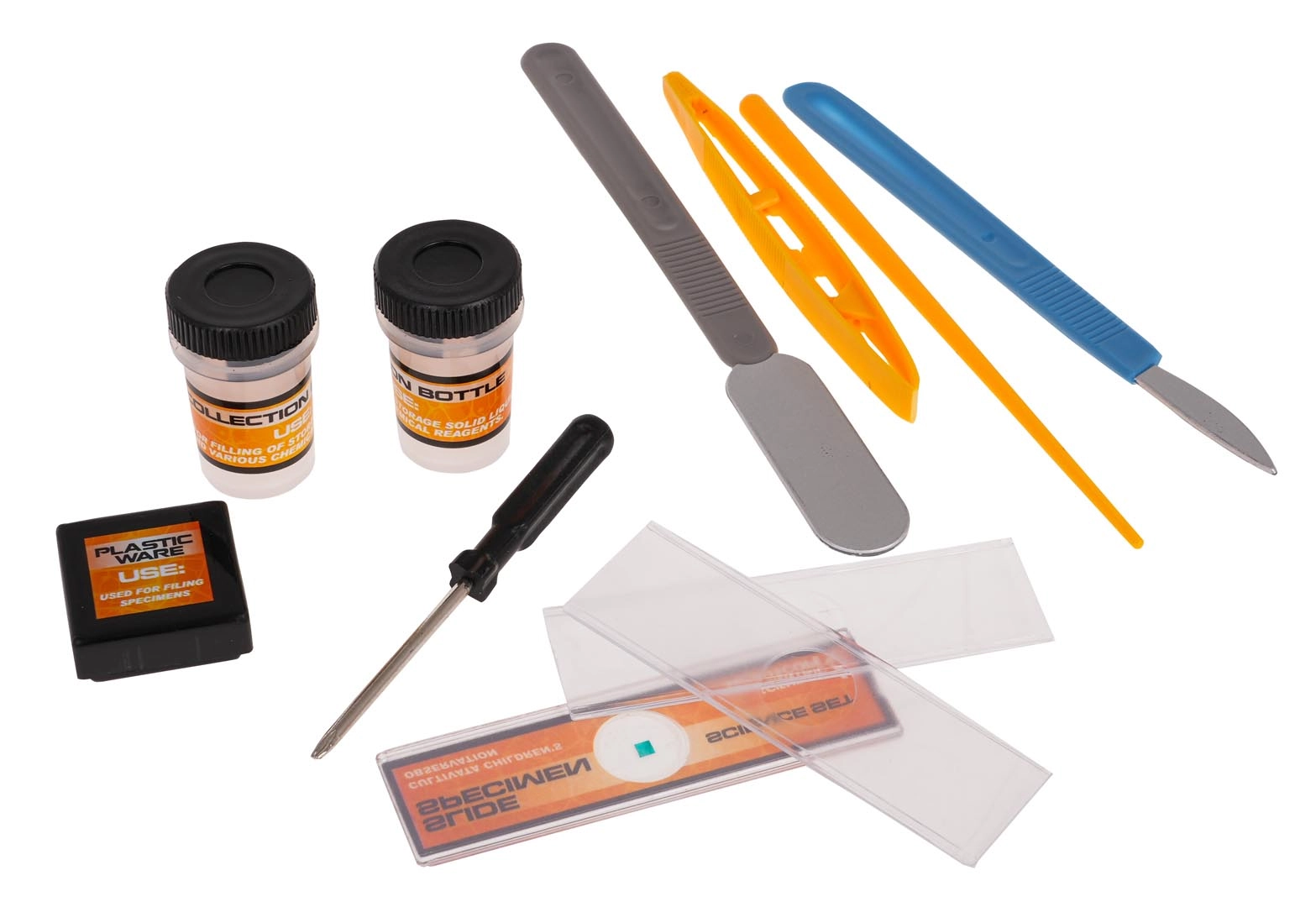 Χάρη στο εκτενές σετ αξεσουάρ, που περιλαμβάνει πλακίδια, τσιμπίδες και σπάτουλες, τα παιδιά μπορούν να πειραματιστούν και να ανακαλύψουν τον κόσμο γύρω τους.