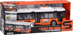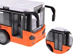 Ιδιαίτερη ατραξιόν είναι οι ανοιγόμενες πόρτες, που ελέγχονται με έναν περιστροφικό διακόπτη πάνω από τις πόρτες. Η συνολική εμφάνιση του λεωφορείου είναι πολύ ρεαλιστική και θα χαρίσει πολλή χαρά στον μικρό οδηγό.