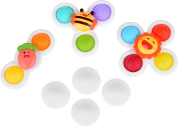 Ανακαλύψτε διασκεδαστικά και πρακτικά αισθητηριακά παιχνίδια για τους μικρούς: σετ τριών σπίνερ με βεντούζα που κολλούν σε μπανιέρα, παράθυρο ή τραπέζι. Προσφέρουν διασκέδαση στο μπάνιο, ενισχύουν τη λεπτή κινητικότητα και χάρη στα pop-it «τυμπανάκια» προσδίδουν μια χαλαρωτική απτική εμπειρία. Τα χαρούμενα μοτίβα ήλιου, καρότου και μελισσούλας τραβούν την προσοχή και καλλιεργούν την παιδική περιέργεια.