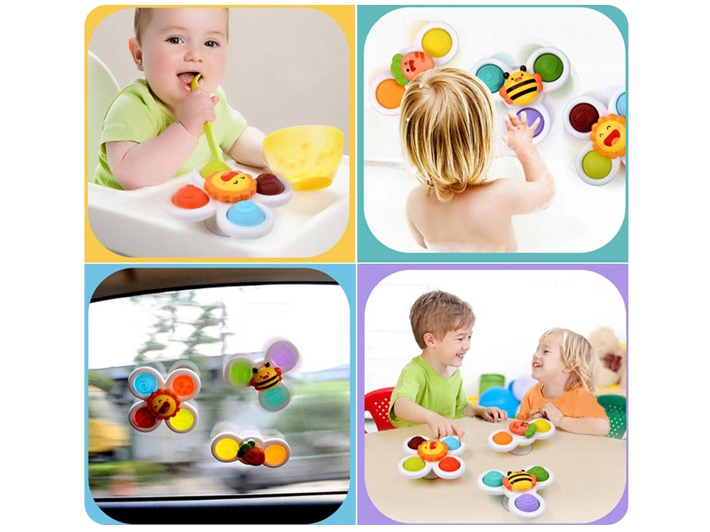 - 3× αισθητηριακό fidget spinner με βεντούζα (ήλιος, μελισσούλα, καρότο)
