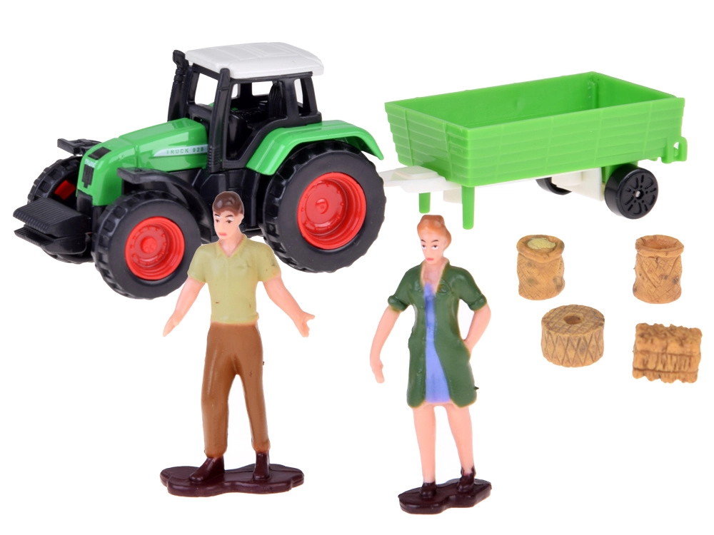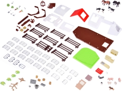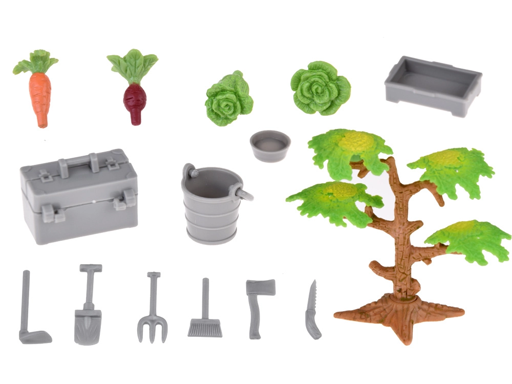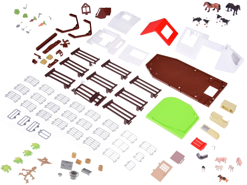 Το σετ περιλαμβάνει πλαστικές φιγούρες ζώων όπως σκύλους, άλογα, γουρουνάκια, πρόβατα και αγελάδες, κατασκευασμένες με έμφαση στη λεπτομέρεια. Δεν λείπουν οι φιγούρες του αγρότη και της νοικοκυράς, που εμπλουτίζουν το παιχνίδι με τις καθημερινές αγροτικές υποχρεώσεις. Το σετ περιλαμβάνει επίσης τρακτέρ με ρυμουλκούμενο, κηπουρικά εργαλεία και διακοσμητικά αυτοκόλλητα για εξατομίκευση της φάρμας.
