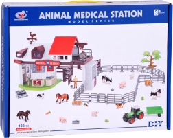 Περιλαμβάνεται κτηνιατρικός σταθμός με διαστάσεις 34 x 24 x 15 cm, κατασκευασμένος από ανθεκτικό πλαστικό και εξοπλισμένος με λειτουργικές πόρτες και παράθυρα. Εκεί τα παιδιά μπορούν να προσομοιώνουν τη φροντίδα των ζώων και να παρέχουν την απαραίτητη ιατρική περίθαλψη.