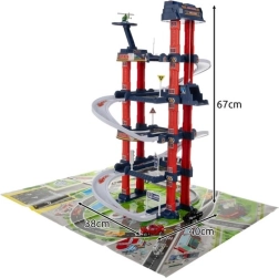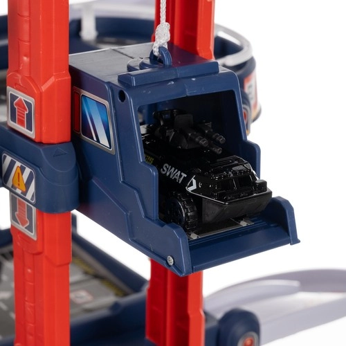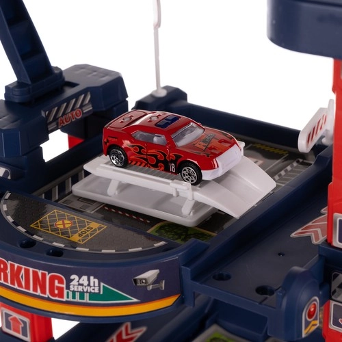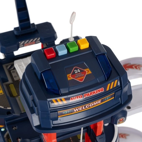 Ο διαδραστικός ανελκυστήρας μπορεί να τοποθετηθεί αριστερά ή δεξιά, ελέγχεται με χρωματιστά κουμπιά (πάνω/κάτω) και συνοδεύεται από αναβοσβήνοντα φώτα και ηχητικά εφέ (σειρήνες, κορναρίσματα, μηχανήματα έργου), που ενισχύουν τη φαντασία των παιδιών. Περιλαμβάνεται μεγάλο χαλάκι παιχνιδιού με χάρτη πόλης, πάνω στο οποίο θα στήσετε τα γκαράζ και θα τοποθετήσετε τα σήματα, καθώς και 2 αυτοκινητάκια και ελικόπτερο.