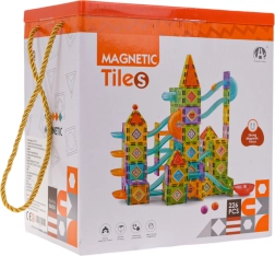Αυτό το εκτεταμένο σετ κατασκευών συνδυάζει μαγνητικά πλακίδια και στοιχεία για πίστες μπίλιας, ώστε παιδιά από 3 ετών να χτίζουν πύργους, κάστρα και πρωτότυπες διαδρομές για πολύχρωμες μπίλιες. Τα κομμάτια είναι κατασκευασμένα από ποιοτικό, λείο πλαστικό σε ζωντανά χρώματα, οι μαγνητικές ακμές συνδέονται εύκολα και σταθερά και οι κατασκευές παραμένουν σταθερές ακόμη και σε μεγαλύτερο ύψος.