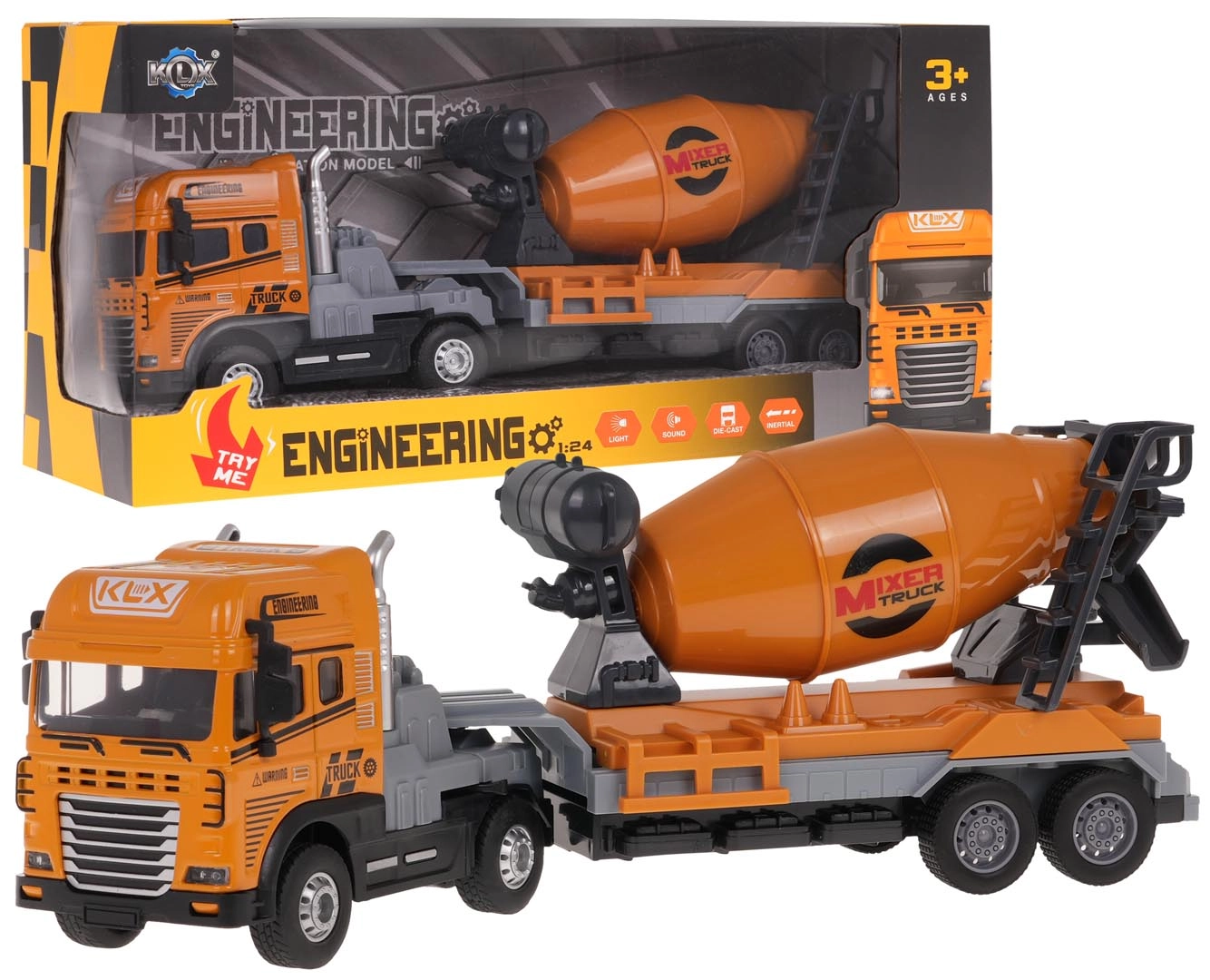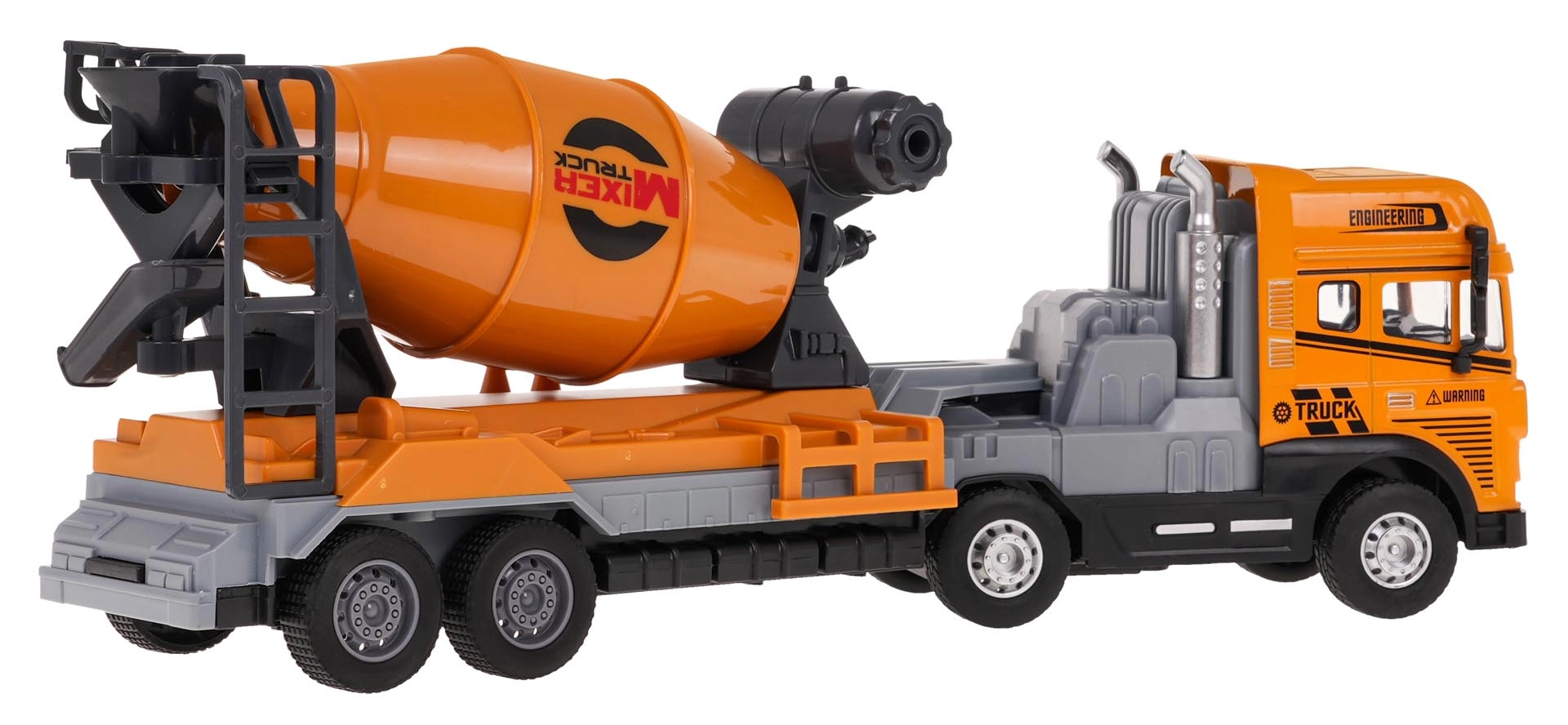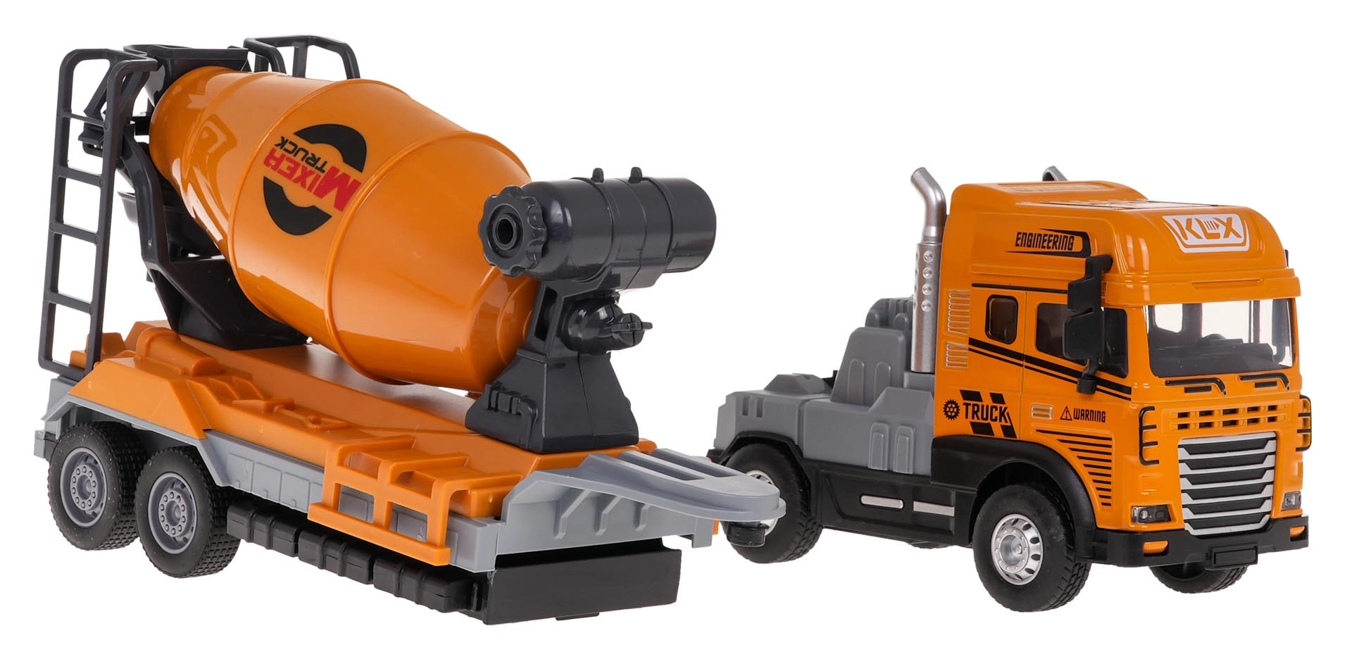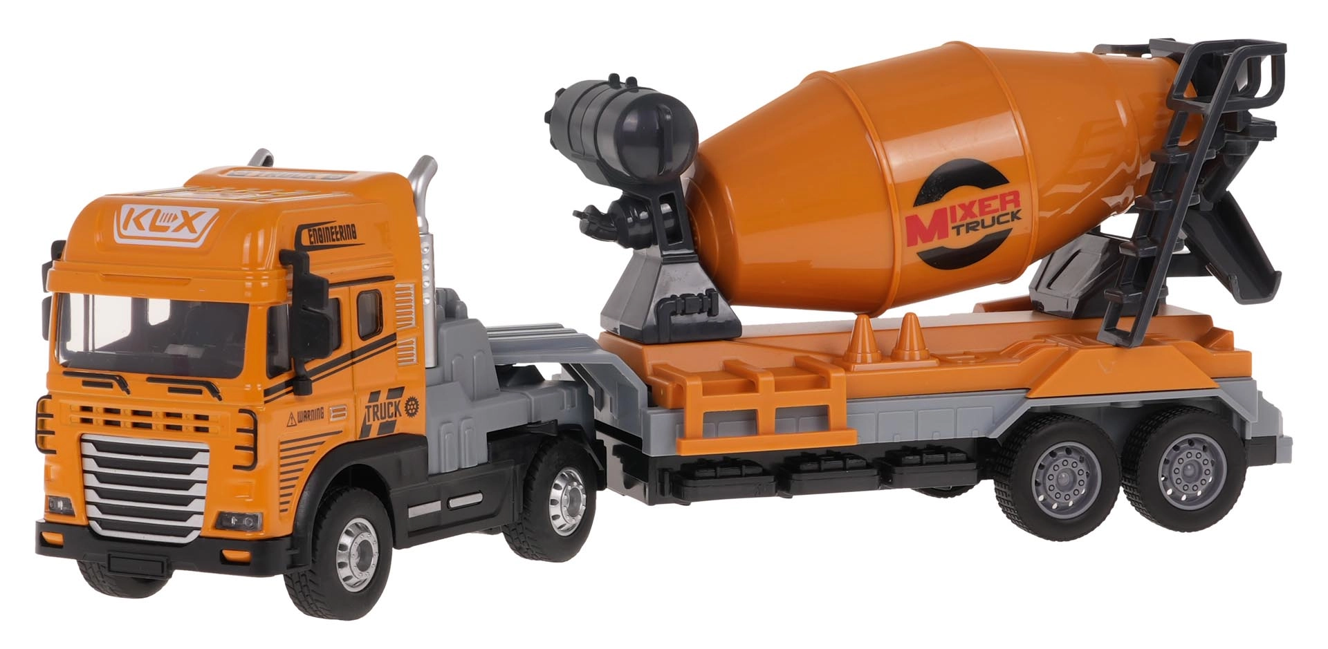 Βάλτε μπρος το εργοτάξιο με τη στιβαρή μπετονιέρα σε κλίμακα 1:24. Χάρη στη μεταλλική καμπίνα και το ποιοτικό πλαστικό σασί, το παιχνίδι είναι ανθεκτικό και έτοιμο για καθημερινές περιπέτειες. Τα ελαστικά πέλματα των τροχών εξασφαλίζουν άριστη πρόσφυση, η κίνηση στους πίσω τροχούς προσφέρει ομαλή οδήγηση και το αποσπώμενο ρυμουλκούμενο διευρύνει τις δυνατότητες παιχνιδιού.