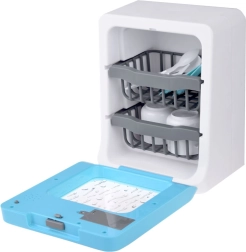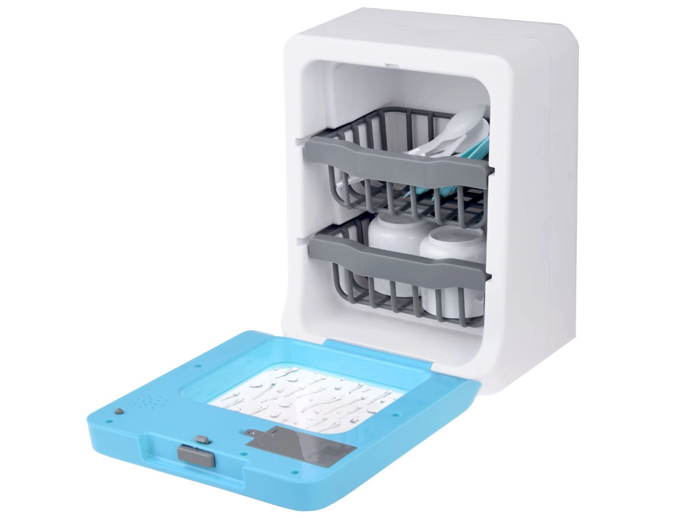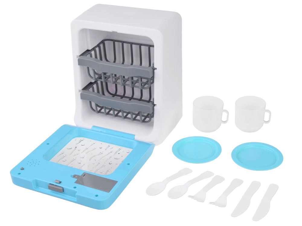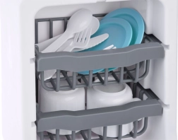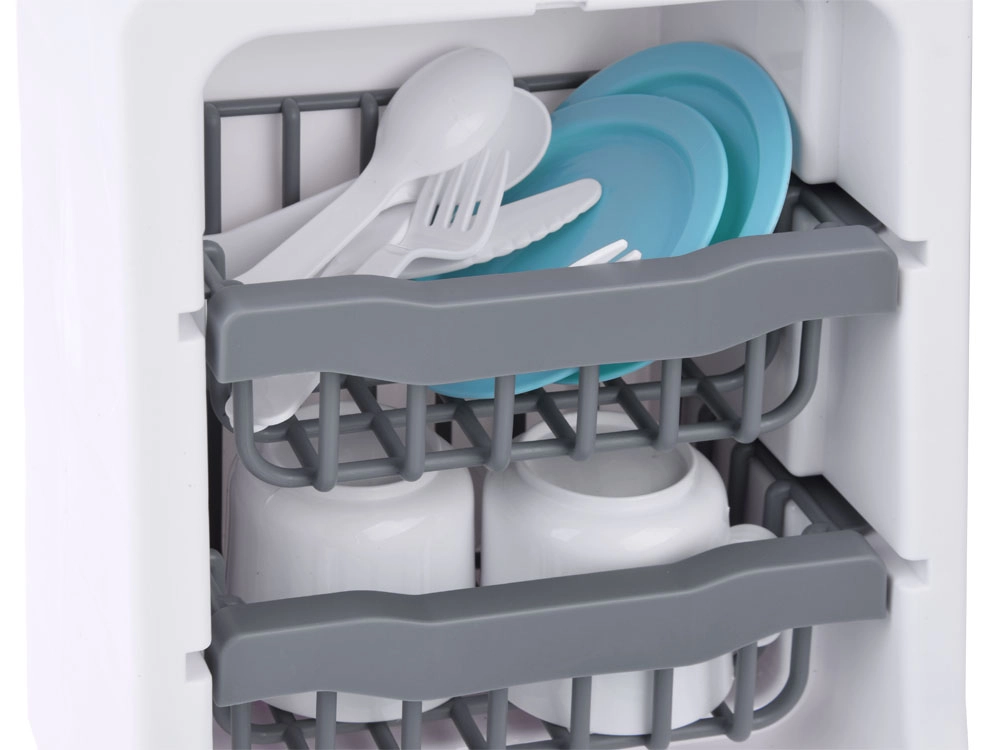 Αυτό το παιδικό πλυντήριο φέρνει ρεαλιστικά στοιχεία στο παιχνίδι: από τον ήχο του νερού και τον ήχο ξεβγάλματος/αποστείρωσης έως τη σήμανση ολοκλήρωσης προγράμματος. Χάρη στο πάνελ αφής οι μικροί βοηθοί επιλέγουν εύκολα λειτουργία και χρόνο. Οι ανοιγόμενες πόρτες και τα διεπίπεδα καλάθια επιτρέπουν άνετη τοποθέτηση πιάτων, κουπών και μαχαιροπίρουνων.