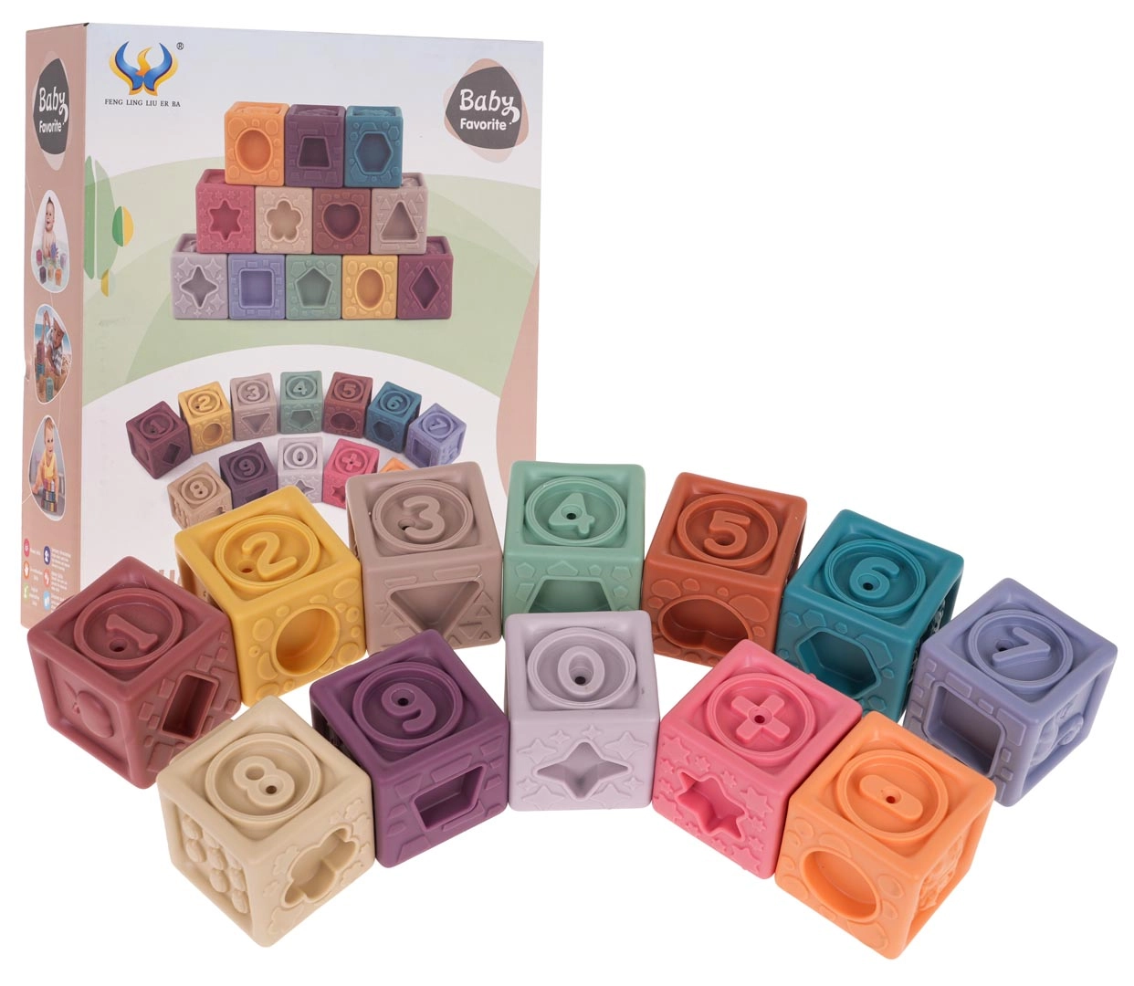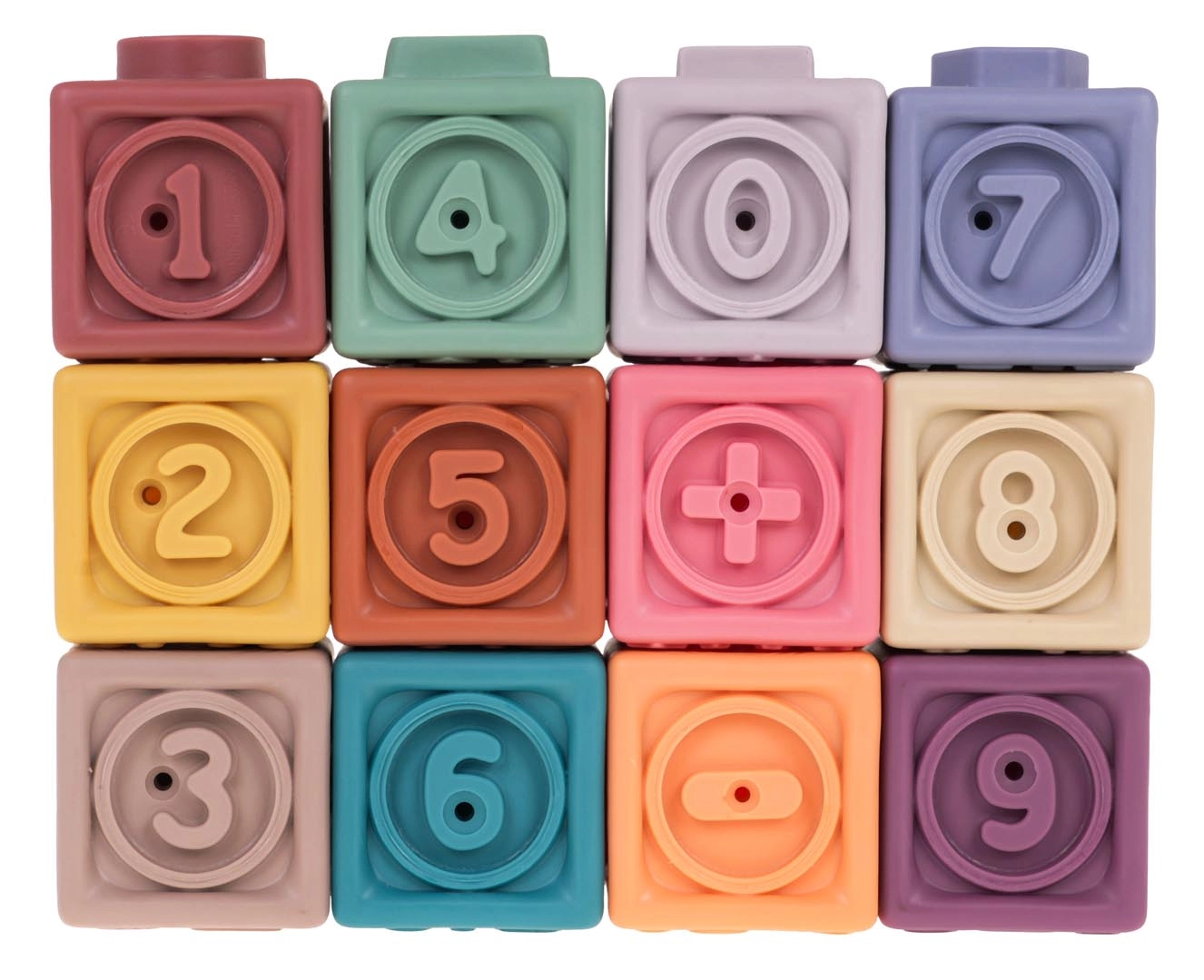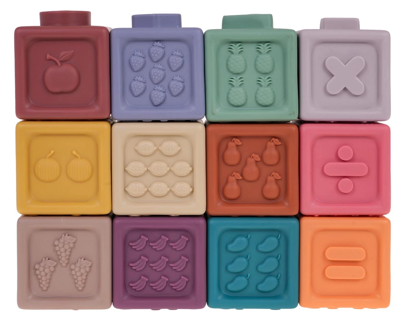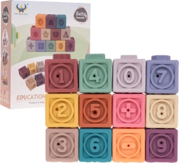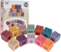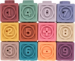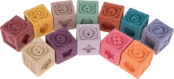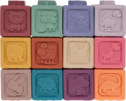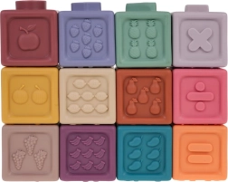 Το σετ περιλαμβάνει 12 πολύχρωμα σιλικονούχα τουβλάκια που ενισχύουν την οπτική διέγερση και τη δημιουργικότητα των παιδιών.