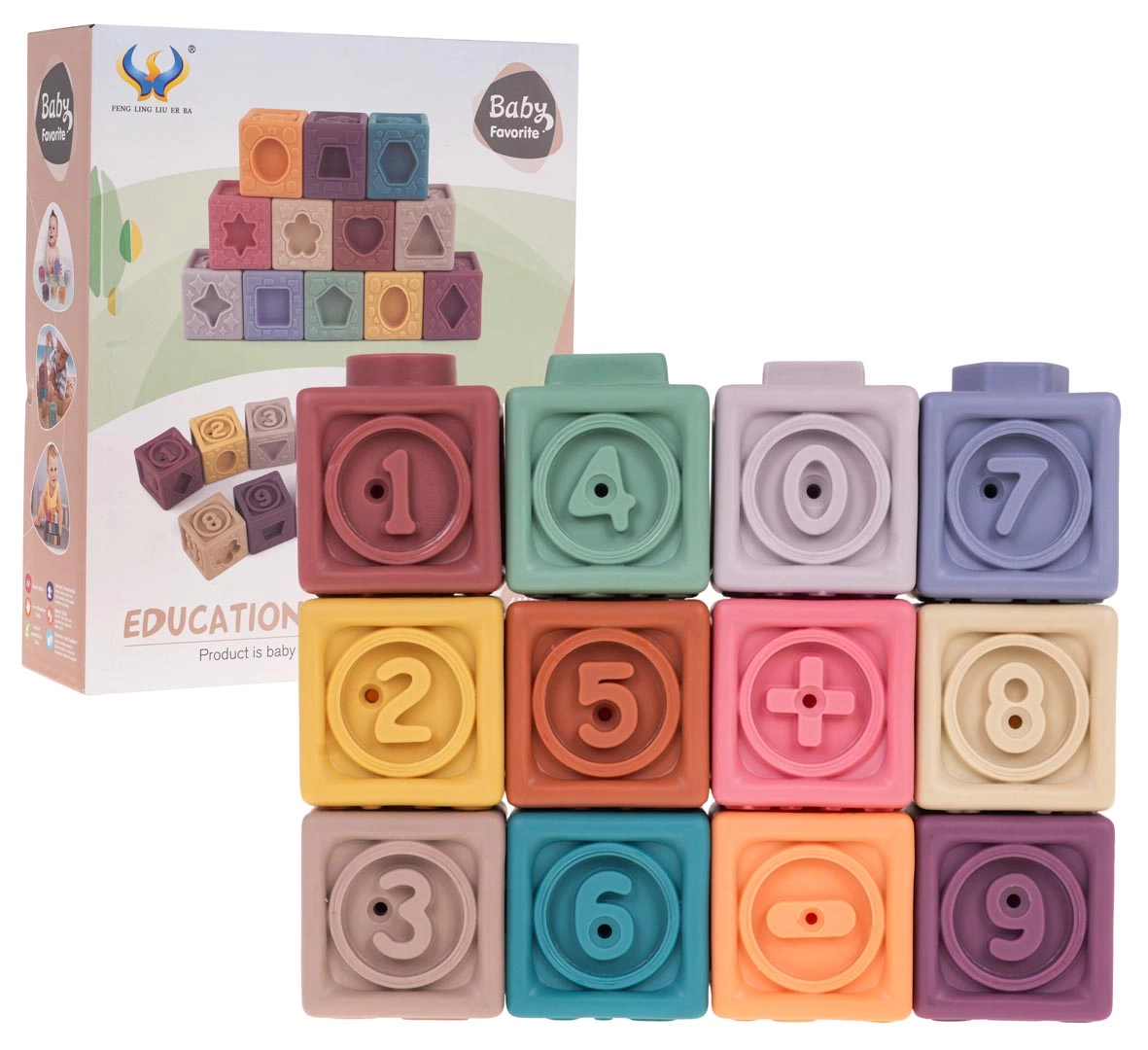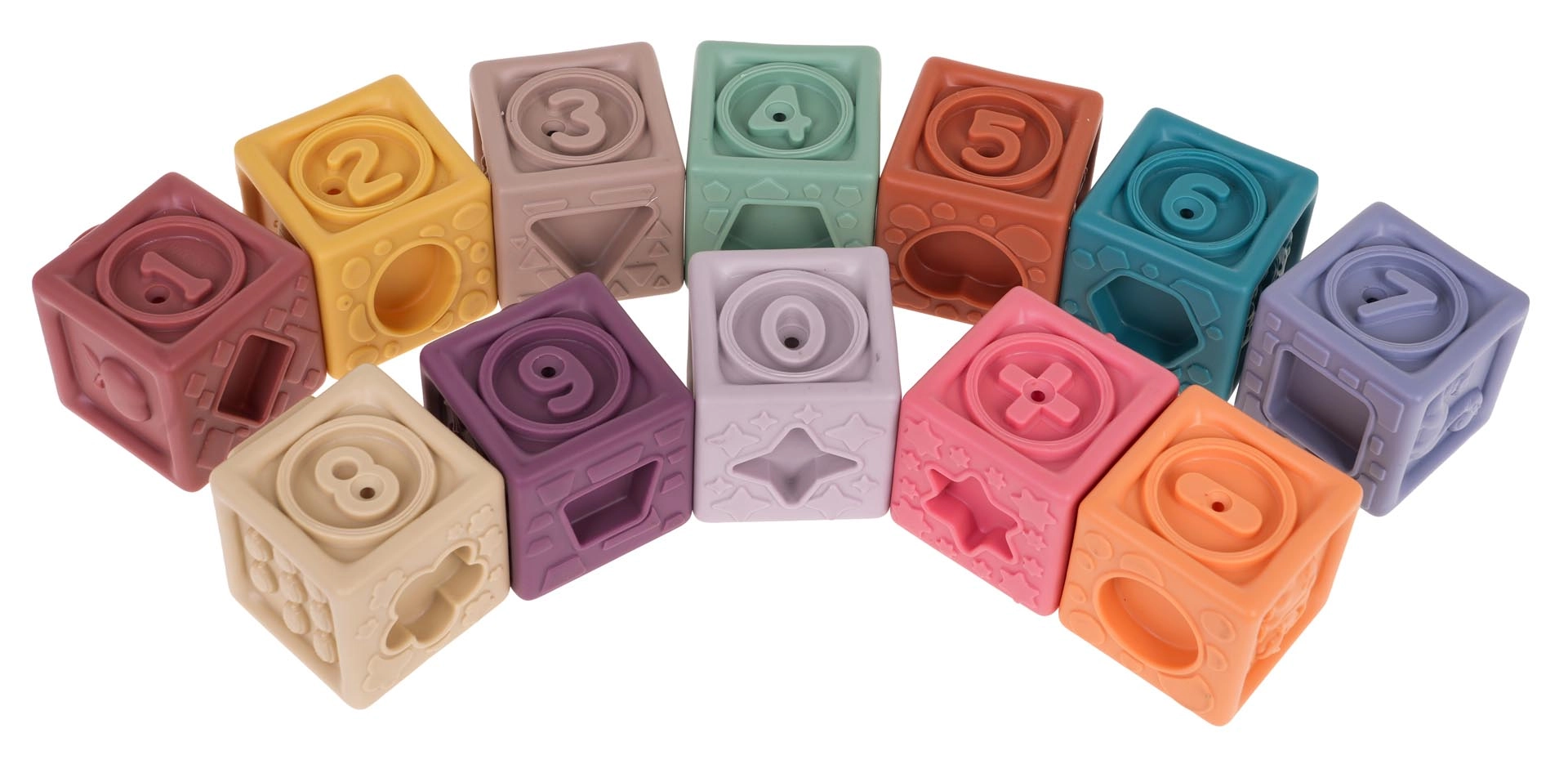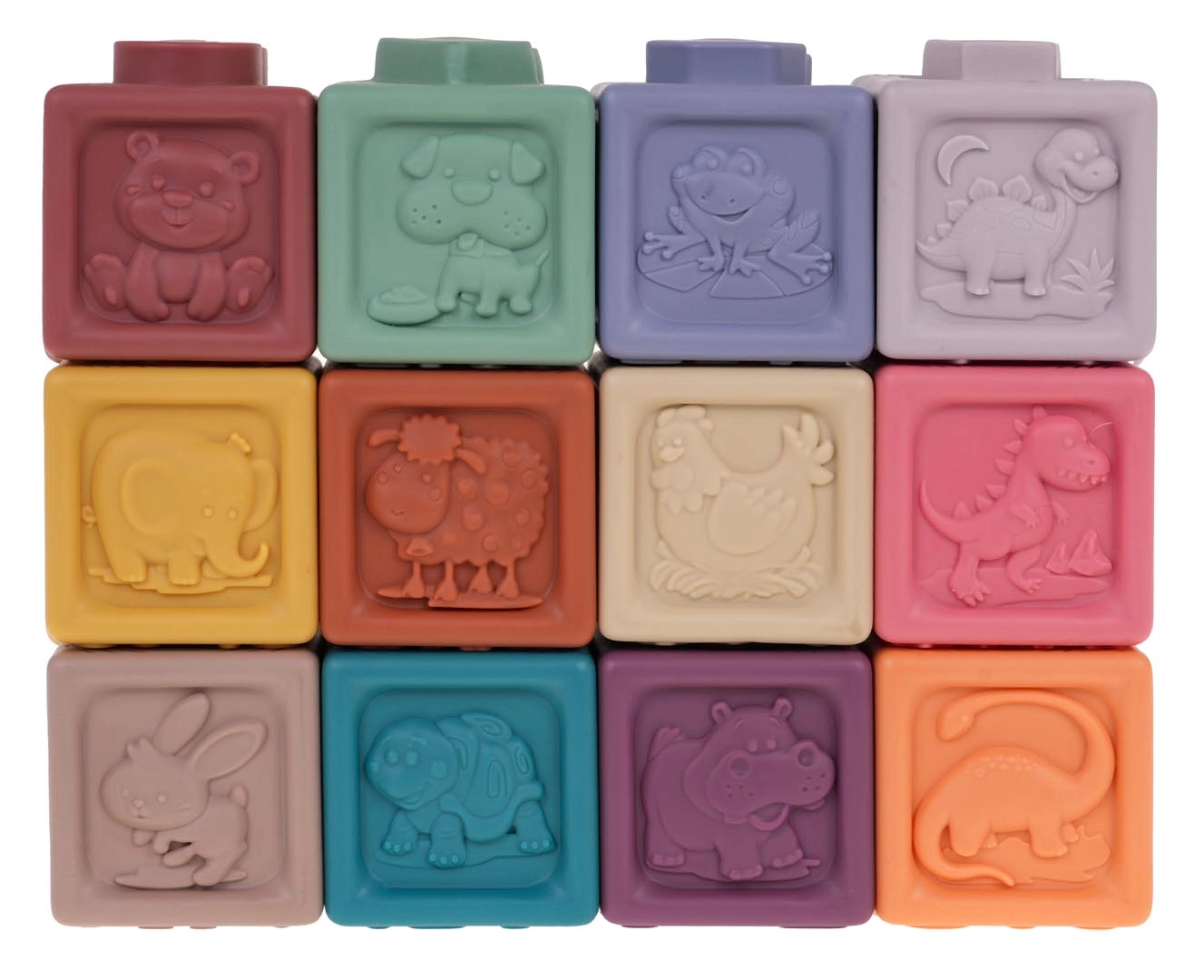 Το σετ περιλαμβάνει 12 πολύχρωμα σιλικονούχα τουβλάκια που ενισχύουν την οπτική διέγερση και τη δημιουργικότητα των παιδιών.