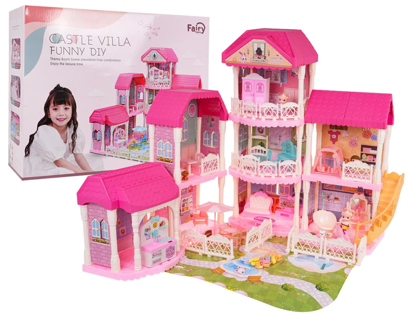 Ανακαλύψτε το όμορφο και μεγάλο ροζ σπιτάκι, ιδανικό για παιδιά από τριών ετών. Αυτό το παραμυθένιο σπιτάκι αποτελείται από 4 αποσπώμενες μονάδες, τις οποίες μπορείτε να συνδυάζετε ελεύθερα. Το σπιτάκι προσφέρει πλήρως εξοπλισμένο σαλόνι, μπάνιο, κρεβατοκάμαρα, κουζίνα και γκαρνταρόμπα. Δεν λείπουν επίσης παιδικό δωμάτιο και υπαίθρια ζώνη χαλάρωσης.