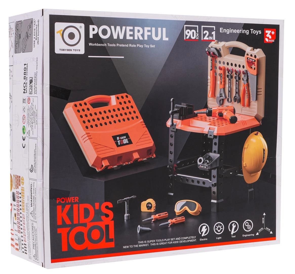 Ανακαλύψτε τον κόσμο της διασκεδαστικής χειροτεχνίας με το παιδικό σετ εργαστηρίου, το οποίο περιλαμβάνει 90 διαφορετικά εξαρτήματα και επιτρέπει τη συναρμολόγηση πάγκου εργασίας ή βαλιτσάκι εργαλείων. Ιδανικό για την ανάπτυξη της φαντασίας και της λεπτής κινητικότητας των παιδιών.