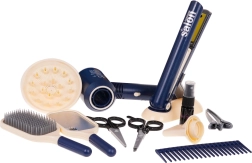 Στη συσκευασία τα παιδιά θα βρουν ό,τι χρειάζεται ένας μικρός κομμωτής: ψαλίδι, αραιωτικό ψαλίδι, χτένα, βούρτσα, καθρεφτάκι, κοκαλάκια, δοχείο για καλλυντικά και βάση για το σεσουάρ ή το ισιωτικό. Η ποιοτική κατασκευή και τα ασφαλή υλικά εξασφαλίζουν άνετη και ασφαλή χρήση.