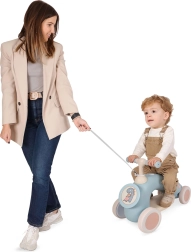 Μελετημένες λεπτομέρειες αυξάνουν την άνεση και την ασφάλεια: περιστρεφόμενο τιμόνι με προστασία από τσίμπημα δαχτύλων, μαλακές λαβές με επένδυση καουτσούκ και αθόρυβοι τροχοί για ομαλή οδήγηση. Το υποπόδιο ξεκουράζει τα κουρασμένα ποδαράκια και ο ιμάντας ρυμούλκησης (100 cm) επιτρέπει στους γονείς να καθοδηγούν το παιδί άνετα. Το χαμηλό βάρος διευκολύνει τη μεταφορά και την αποθήκευση.