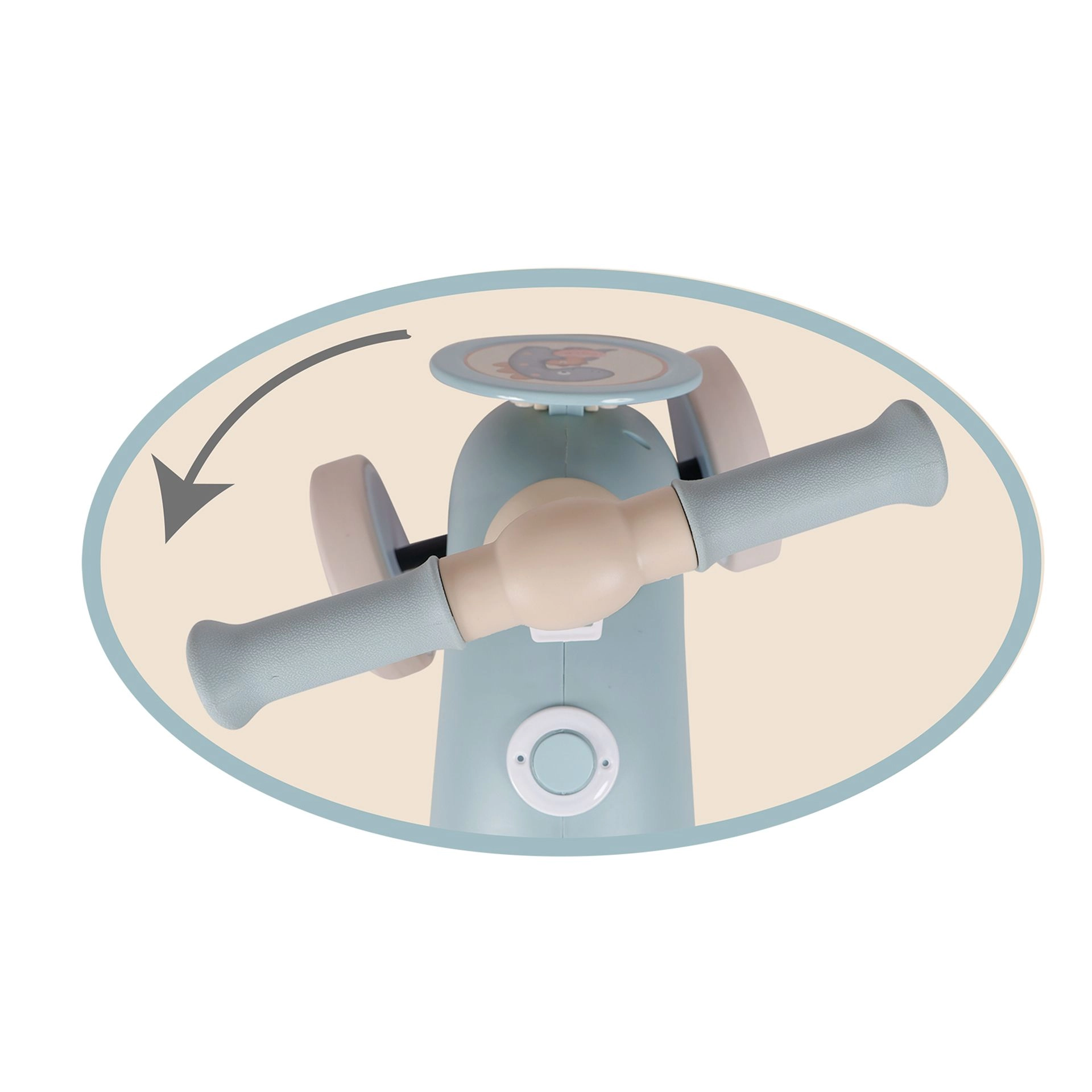 Το περιστρεφόμενο τιμόνι με σύστημα ασφαλείας αποτρέπει το τσίμπημα των δαχτύλων και το ανεπιθύμητο υπερστρίψιμο. Οι λαβές με επένδυση καουτσούκ είναι ευχάριστες και δεν γλιστρούν.