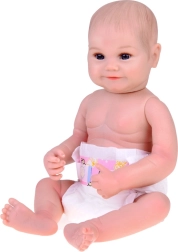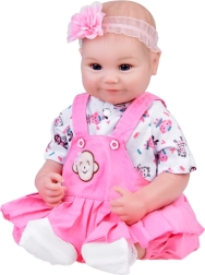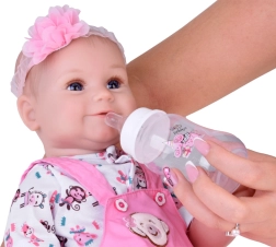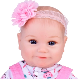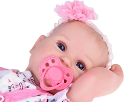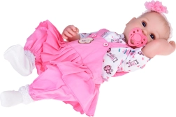 Ρεαλιστική κούκλα μωρό μήκους 50 cm που θα χαρίσει χαρά σε κάθε παιδί με το μαλακό της σώμα, τα κινητά άκρα και το όμορφο χαμόγελο. Περιλαμβάνει πλούσιο σετ αξεσουάρ για παιχνίδι φροντίδας – μπιμπερό, πάνα, μαγνητική πιπίλα, πιστοποιητικό γέννησης και χαριτωμένα ροζ ρουχαλάκια με κορδέλα. Η κούκλα μοιάζει σαν πραγματικό μωρό και ενισχύει τη φαντασία και τις συναισθηματικές δεξιότητες των παιδιών.