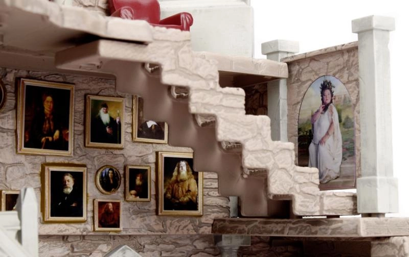 Ο Πύργος Γκρίφιντορ διαθέτει λεπτομερή σχεδίαση με πολλαπλά επίπεδα, κόκκινους καναπέδες, τζάκι και διακοσμητικά στοιχεία όπως πίνακες, ιδανικός για παιχνίδι με τις φιγούρες.