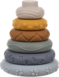 Το σετ περιλαμβάνει διάφορους δακτυλίους και κύβους για χτίσιμο και στοίβαγμα, ενισχύοντας τη δημιουργική και λογική σκέψη των παιδιών.