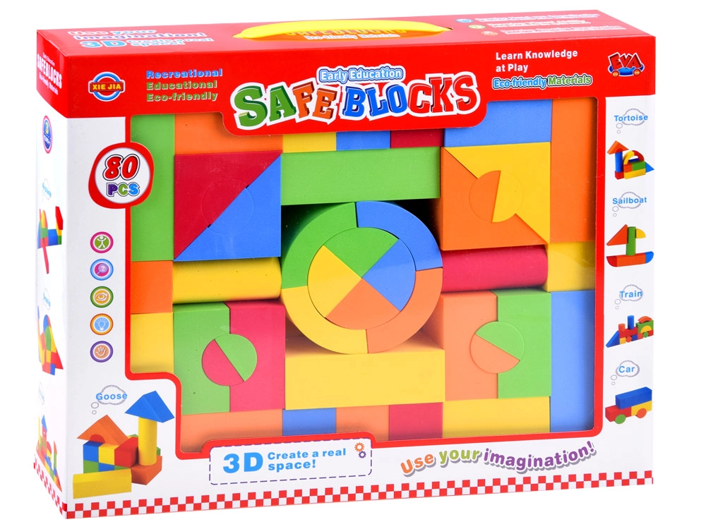Με τα πολύχρωμα αφρώδη δομικά τουβλάκια, τα παιδιά απολαμβάνουν ώρες διασκέδασης δημιουργώντας ποικίλες κατασκευές. Το σετ περιλαμβάνει 80 τουβλάκια σε διαφορετικά σχήματα και χρώματα, που βοηθούν τα παιδιά να αναπτύξουν τη φαντασία και τη λογική σκέψη. Τα τουβλάκια είναι κατασκευασμένα από ποιοτικό αφρό, ασφαλή και αρκετά ανθεκτικά για μακροχρόνια χρήση.