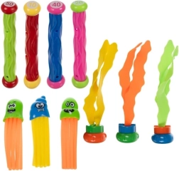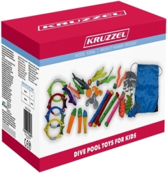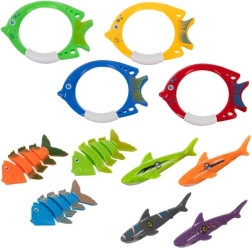 Αυτό το ολοκληρωμένο σετ για καταδύσεις και παιχνίδια στο νερό έχει σχεδιαστεί για διασκέδαση και ανάπτυξη κολυμβητικών δεξιοτήτων. Χάρη στα έντονα χρώματα και τα διαφορετικά σχήματα, τα παιδιά εντοπίζουν εύκολα τα αντικείμενα κάτω από την επιφάνεια, εξασκούν τον προσανατολισμό, την κατάδυση και τον συντονισμό κινήσεων. Η βαθμολογική σήμανση σε επιλεγμένα κομμάτια ενθαρρύνει τον υγιή ανταγωνισμό και δημιουργεί ποικίλα σενάρια παιχνιδιού.