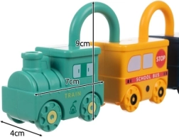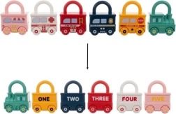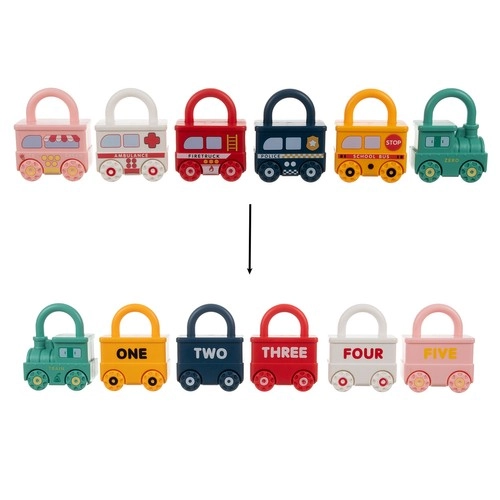 Αυτό το έξυπνο εκπαιδευτικό παιχνίδι συνδυάζει τη διασκέδαση με ουσιαστική μάθηση. Κάθε όχημα είναι μια κλειδαριά και σε καθένα αντιστοιχεί ένα κλειδάκι σε σχήμα αρκούδας με χαραγμένο αριθμό 0–5. Έτσι το παιδί εξασκεί φυσικά τη λεπτή κινητικότητα, τη λογική σκέψη και την αναγνώριση αριθμών. Το επάνω μέρος του λουκέτου περιστρέφεται κατά 360°, και μετά το σωστό ξεκλείδωμα τα οχήματα ενώνονται εύκολα σε ένα μακρύ τρενάκι.