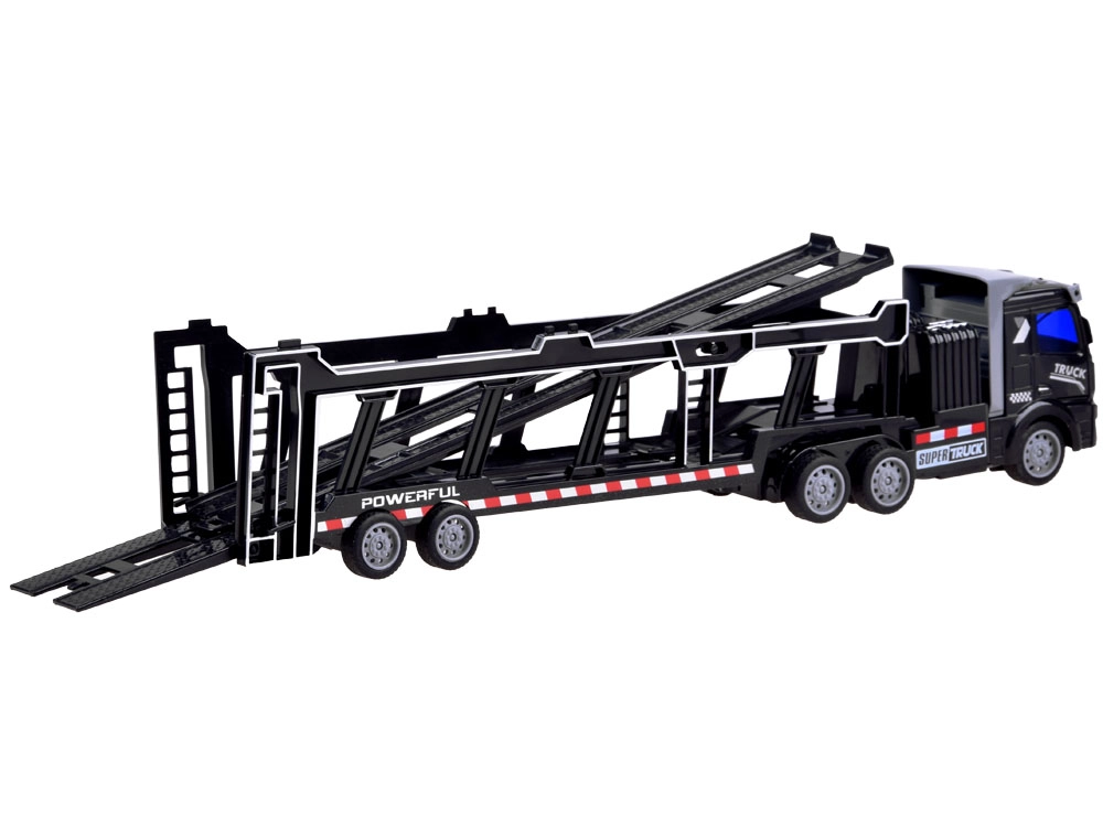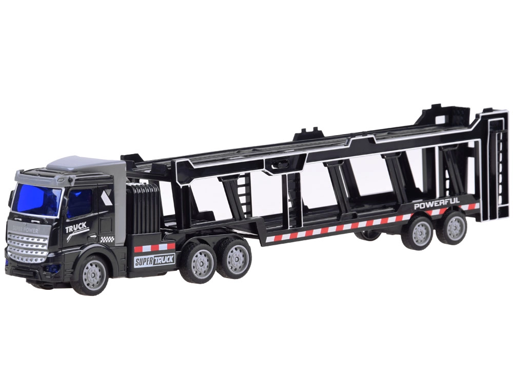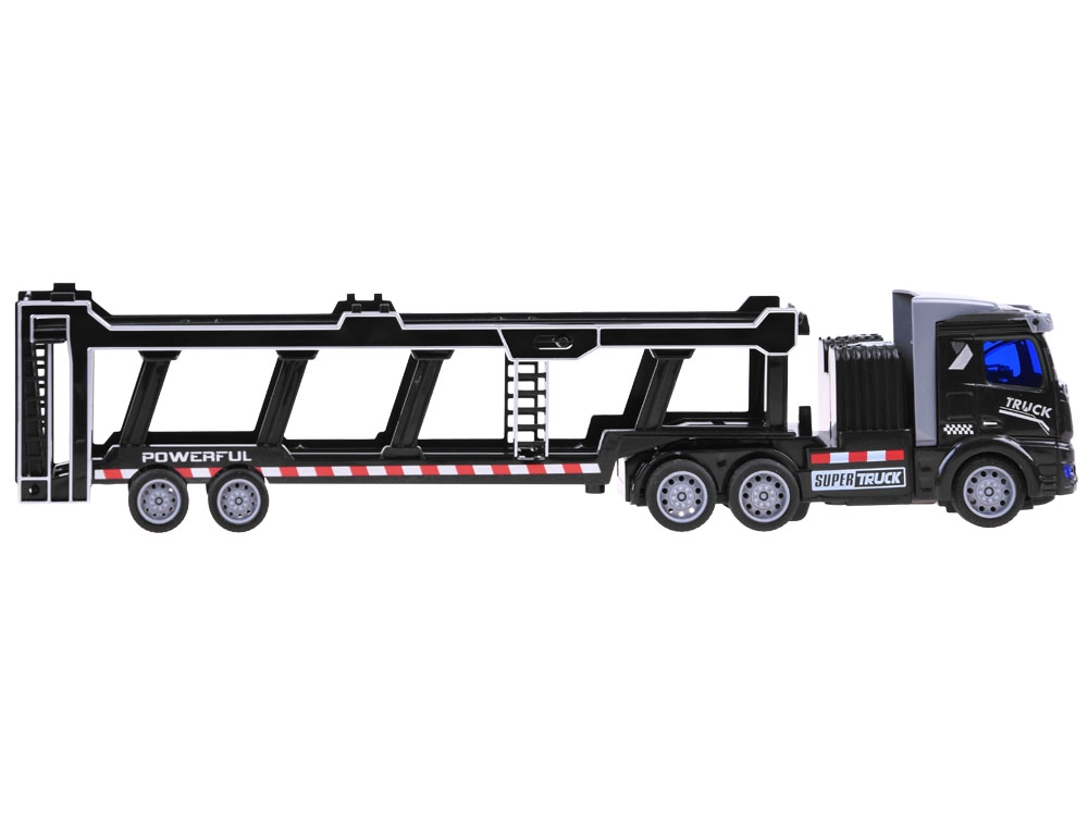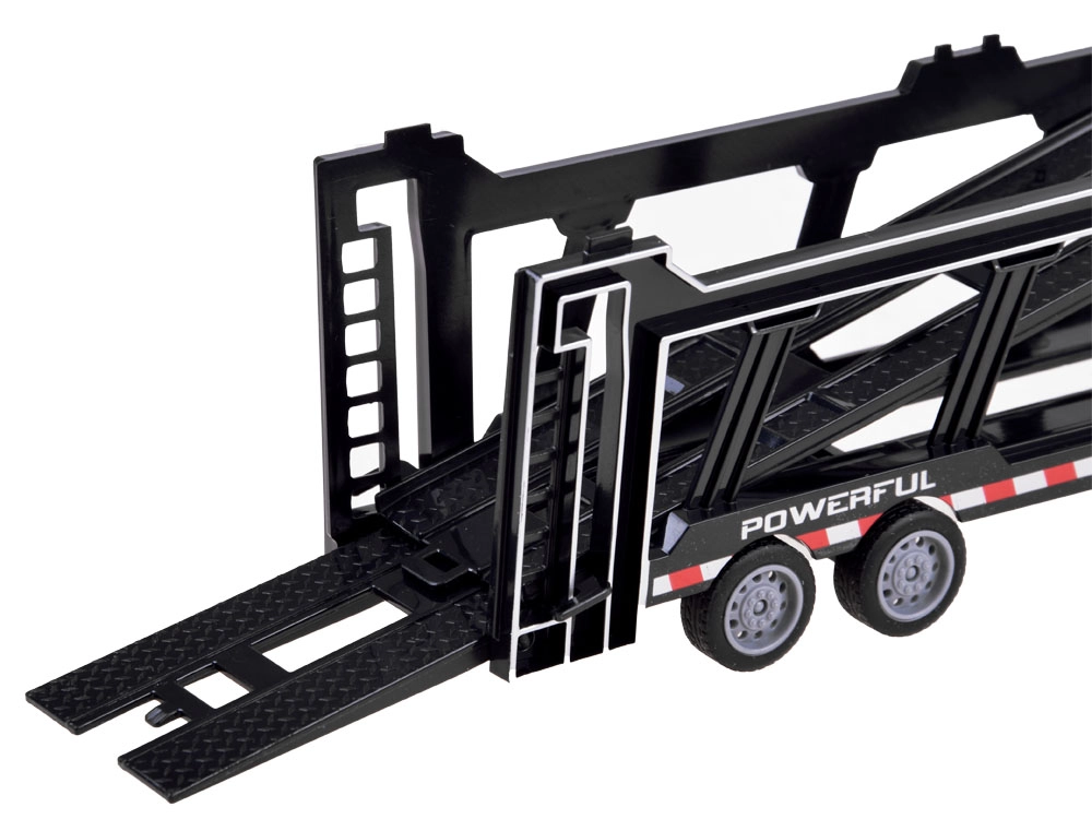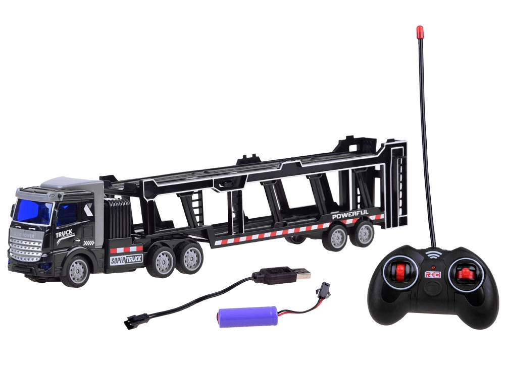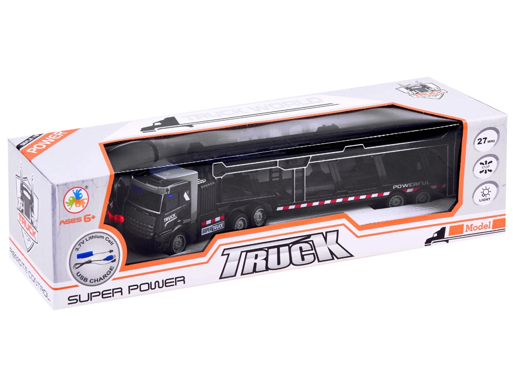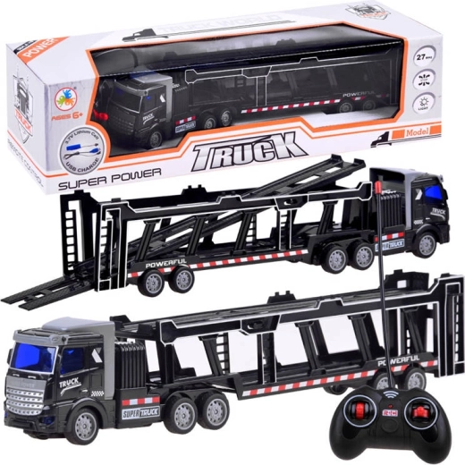 Το ρυμουλκούμενο είναι πλήρως αποσπώμενο και περιλαμβάνει κινούμενα στοιχεία όπως ανοιγόμενες πίσω πόρτες και αναδιπλούμενο επάνω κατάστρωμα, επιτρέποντας τη μεταφορά επιπλέον παιχνιδιών. Το τηλεχειριστήριο, που λειτουργεί στα 27 MHz, διασφαλίζει πλήρη έλεγχο των κινήσεων του φορτηγού – μπροστά, πίσω, αριστερά και δεξιά.