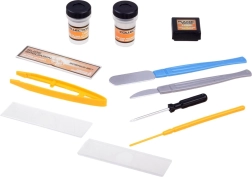 Στο πακέτο θα βρείτε πλακίδια, δοχεία δειγμάτων, τσιμπιδάκι, σταγονόμετρο, νυστέρι, βελόνα και άλλα εργαλεία – όλα έτοιμα για πειράματα στο σπίτι.