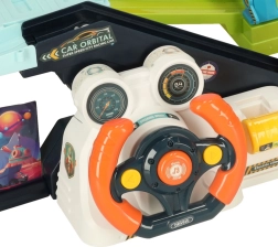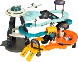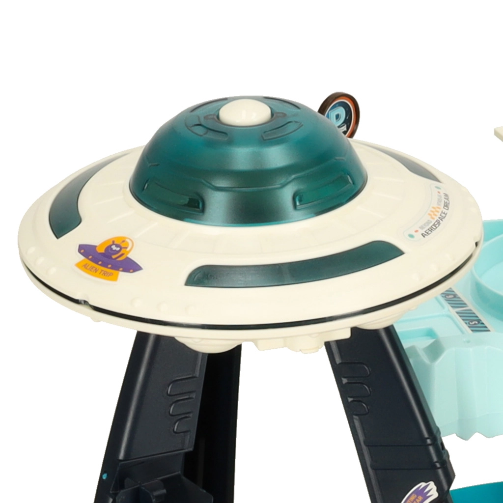 Ο φουτουριστικός πύργος UFO είναι το κέντρο της πίστας· όταν ενεργοποιείται, φωτίζει και παράγει ήχους, προσθέτοντας ατμόσφαιρα στη διαστημική σκηνή. Αυτό το σετ όχι μόνο διασκεδάζει, αλλά επίσης αναπτύσσει τις κινητικές δεξιότητες, τον συντονισμό και τη φαντασία των παιδιών, μεταφέροντάς τα σε έναν συναρπαστικό κόσμο γεμάτο περιπέτειες!
