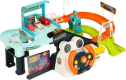 Το σετ περιλαμβάνει τιμόνι, που επιτρέπει στα παιδιά να νιώθουν σαν να βρίσκονται στο τιμόνι ενός πραγματικού αυτοκινήτου, με τρία κουμπιά για την ενεργοποίηση ηχητικών εφέ που εμπλουτίζουν το παιχνίδι. Το τιμόνι ενεργοποιεί επίσης έναν από τους δύο ανελκυστήρες, χάρη στους οποίους τα αυτοκινητάκια ανεβαίνουν στην κορυφή της πίστας.